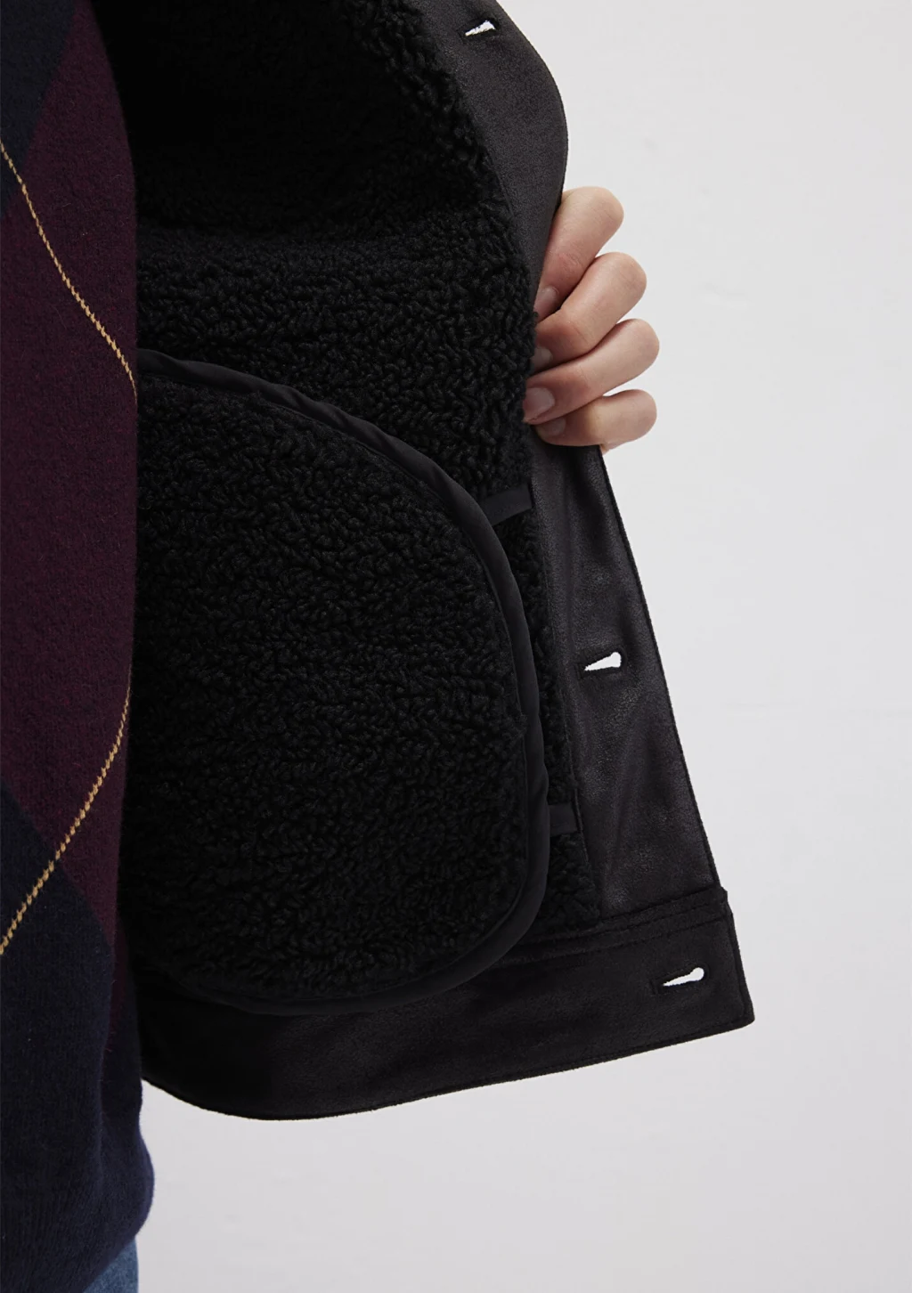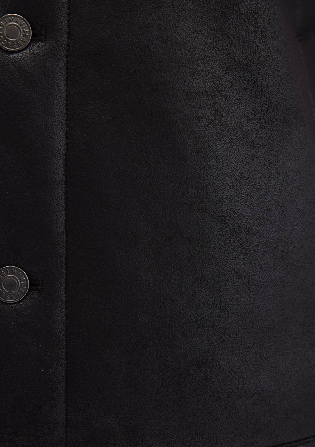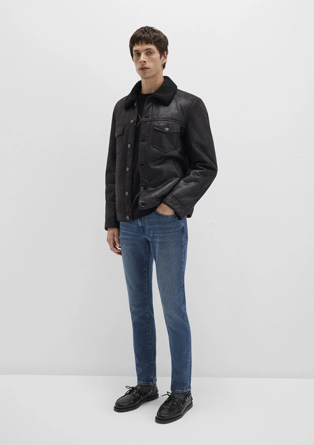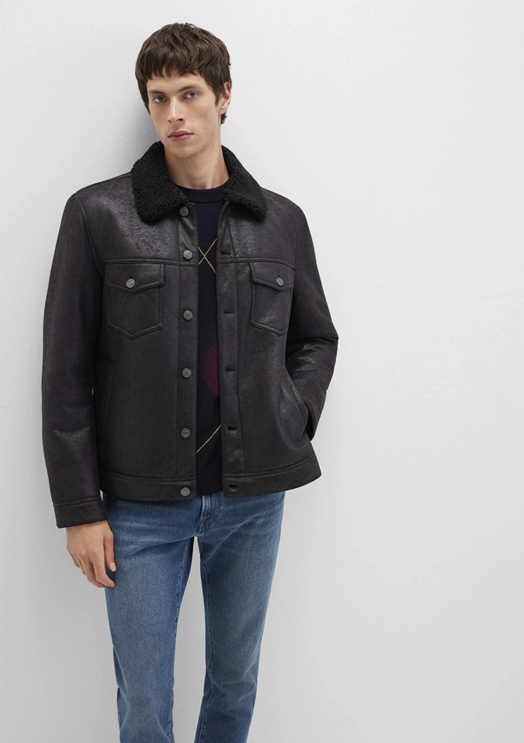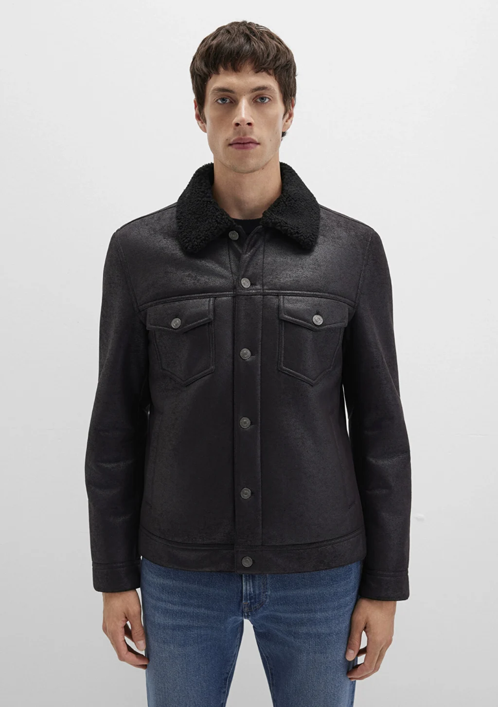 Mavi nin dış giyim koleksiyonundan Suni Kürk Detaylı Siyah Suni Deri Ceket. İki adet yan cep, iki adet düğmeli kapaklı ön cep, içi sherpa detaylı.