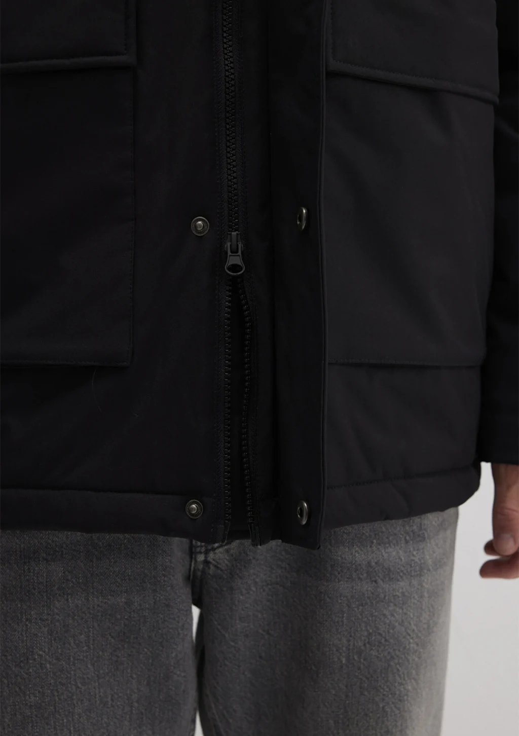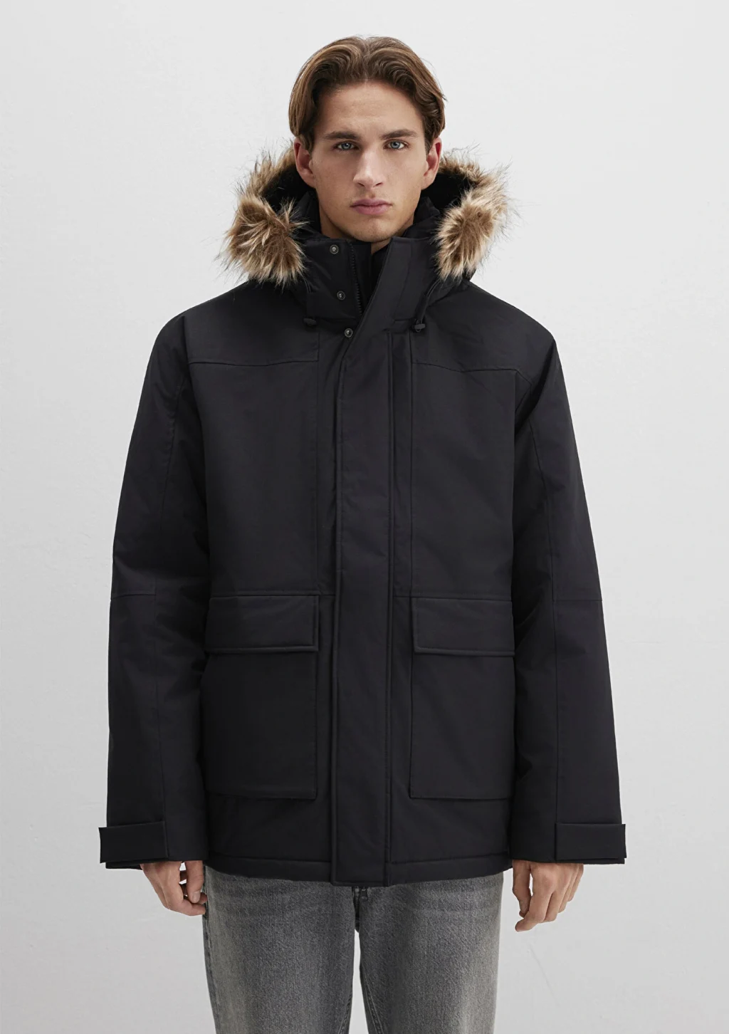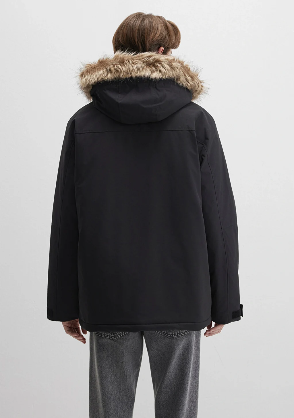 Mavi nin dış giyim koleksiyonundan Kapüşonlu Siyah Parka. İki adet yan cep, iki adet çıt çıtlı kapaklı ön cep, stoperli iple ayarlanabilir sabit kapüşon, fermuar ile çıkabilir kürk, cırt cırtla ayarlanabilir manşet, bir adet iç cep.