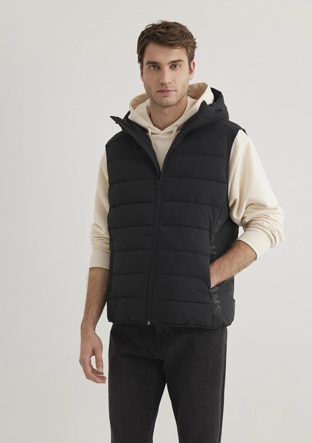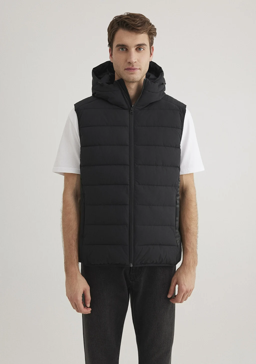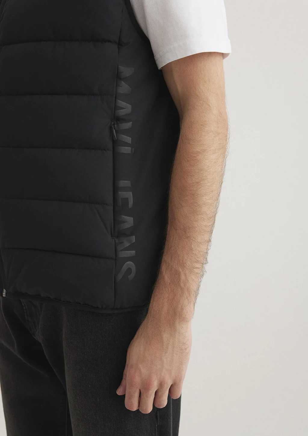 Mavi nin dış giyim koleksiyonundan Mavi Jeans Detaylı Kapüşonlu Siyah Şişme Yelek. İki adet gizli fermuarlı yan cep, stoperli iple ayarlanabilir sabit kapüşon, bir adet iç cep.
