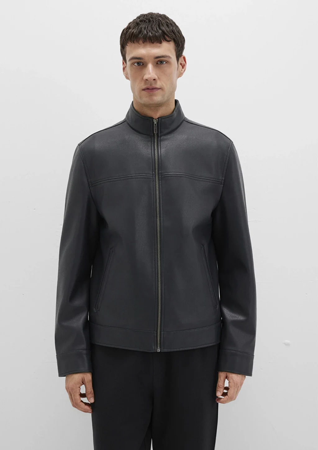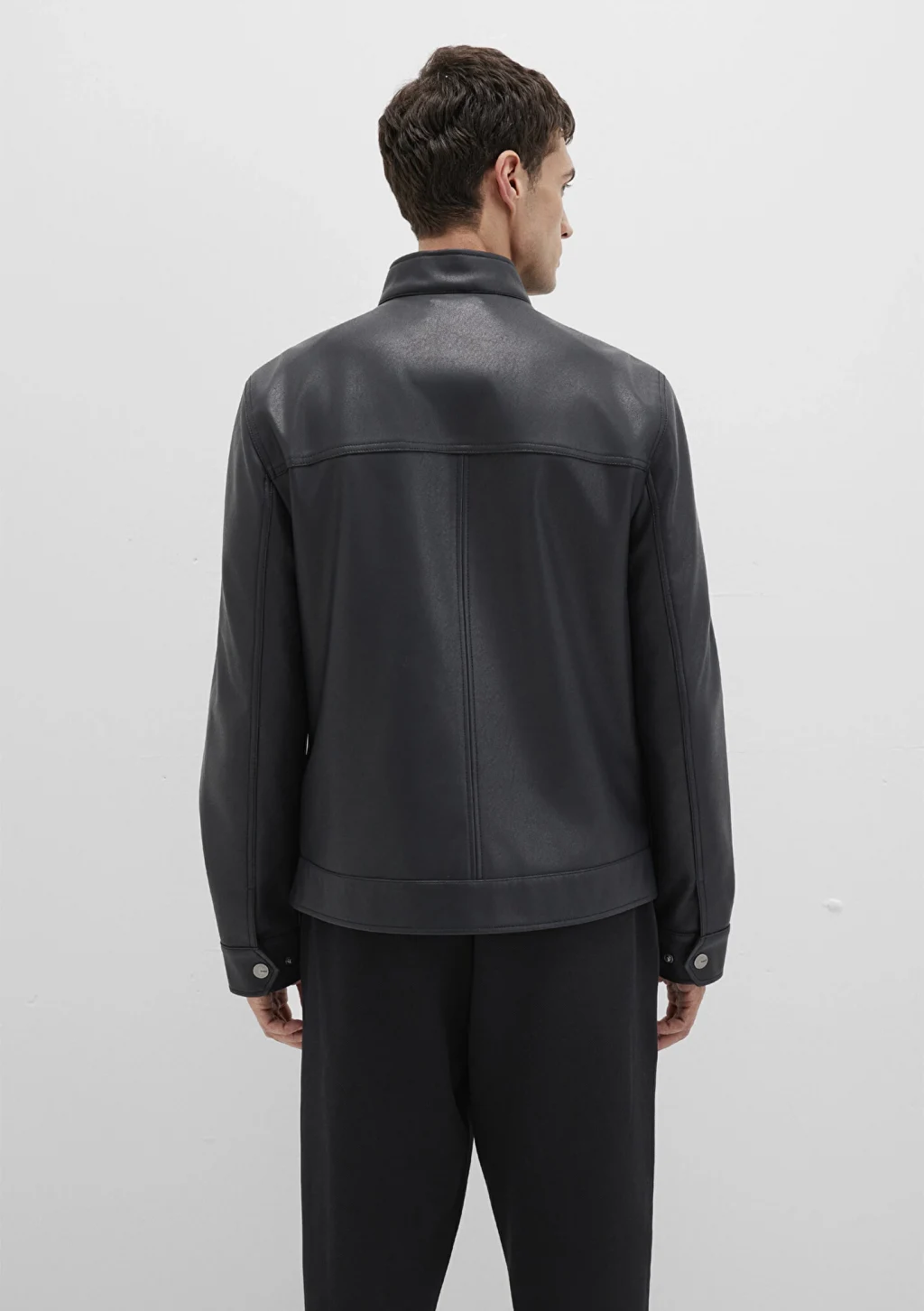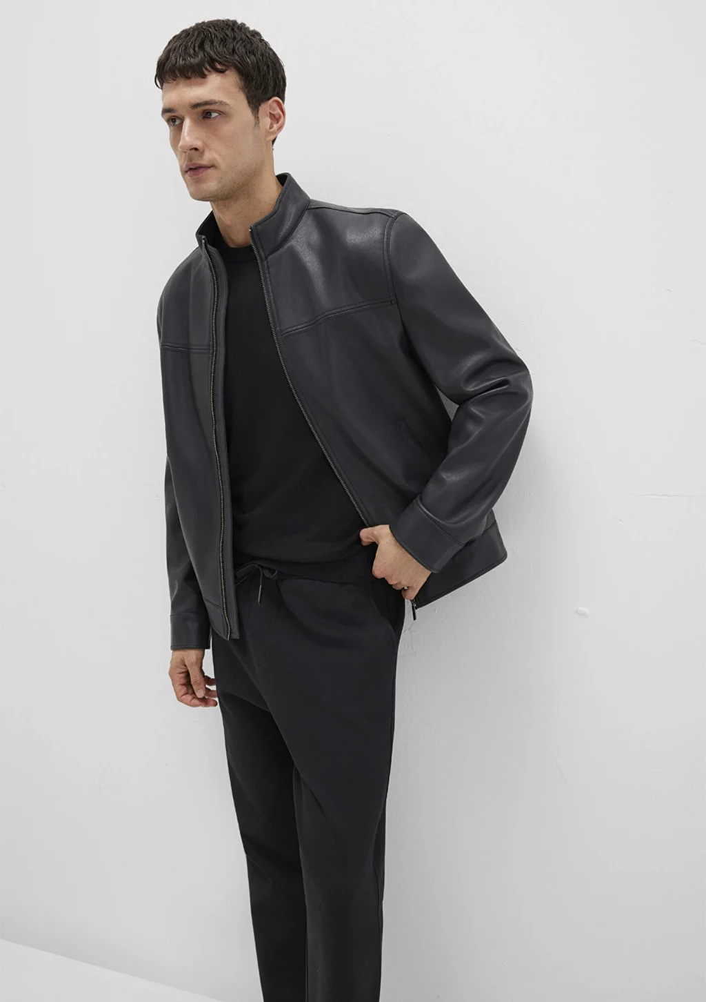 Mavi nin erkek koleksiyonundan Dik Yaka Siyah Suni Deri Ceket.