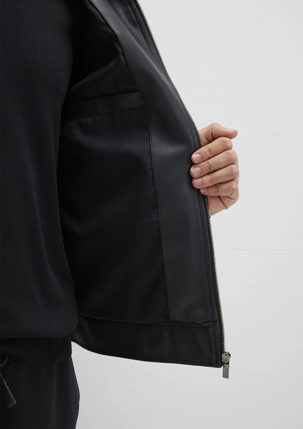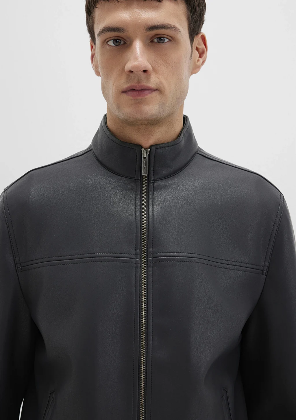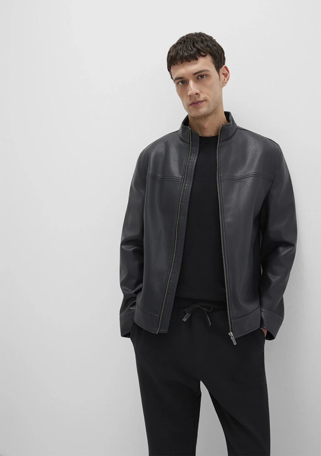 Mavi nin erkek koleksiyonundan Dik Yaka Siyah Suni Deri Ceket.