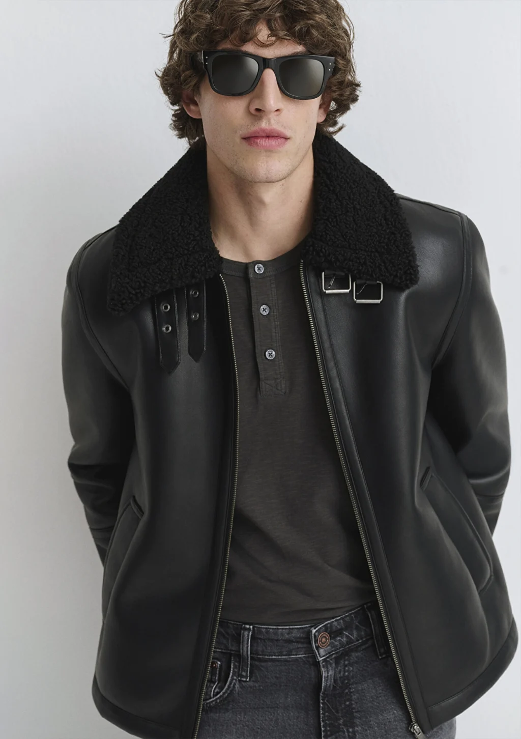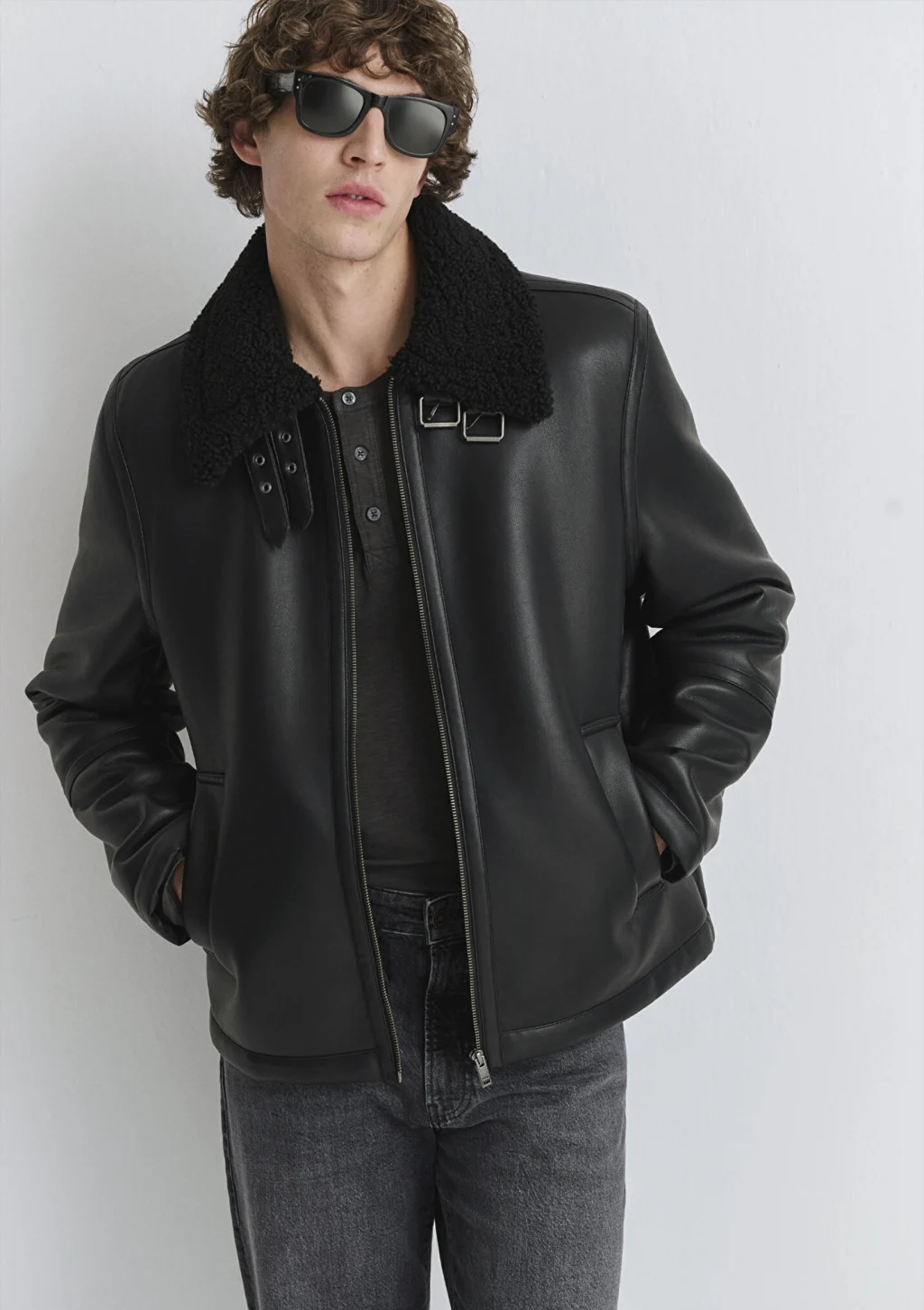 Mavi nin dış giyim koleksiyonundan Suni Kürk Detaylı Siyah Suni Deri Ceket. İki adet yan cep, kemer ile ayarlanabilir yaka, içi sherpa.