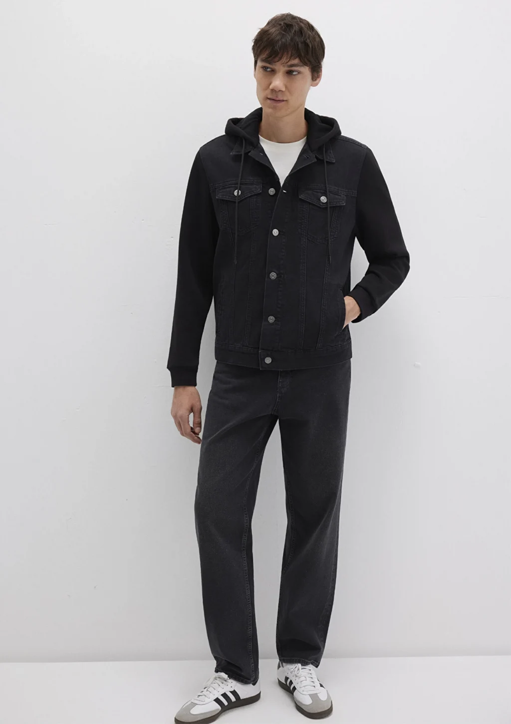 XSIDE Siyah Standart Kalıp Kapüşonlu Erkek Deri Görünümlü Ceket