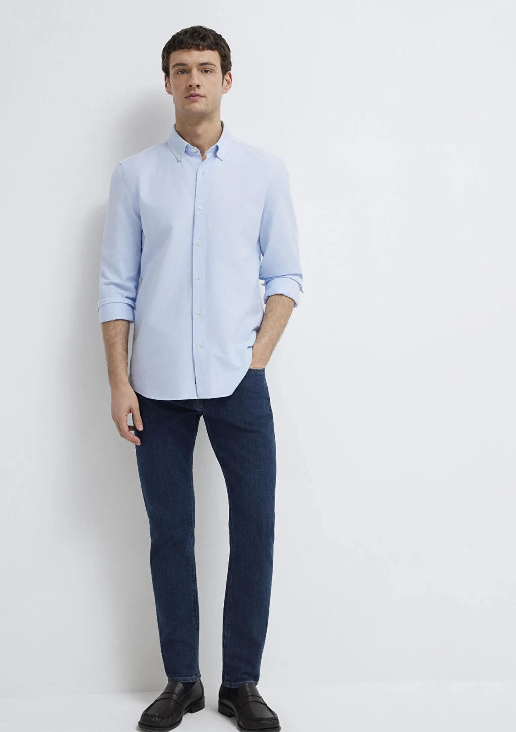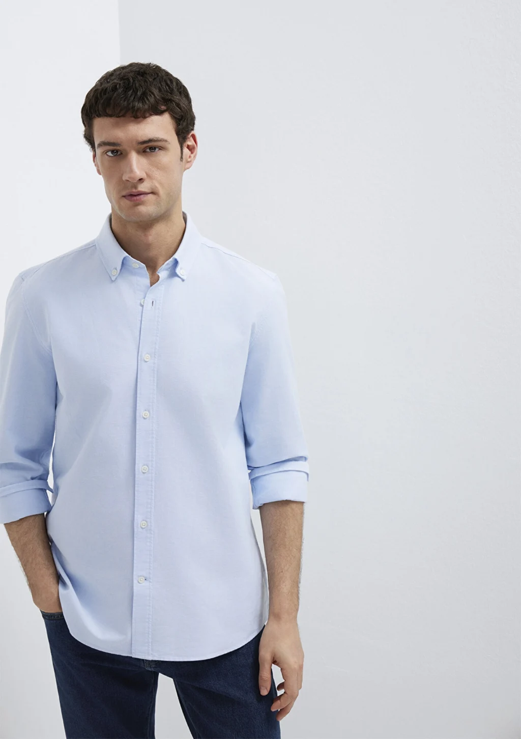Mavi nin erkek koleksiyonundan Mavi Gömlek. Düğmeli gömlek yaka.