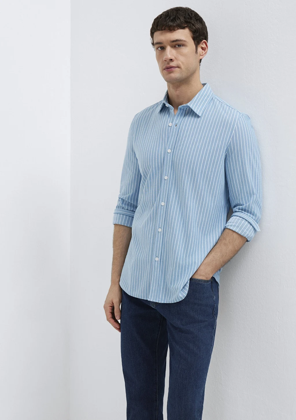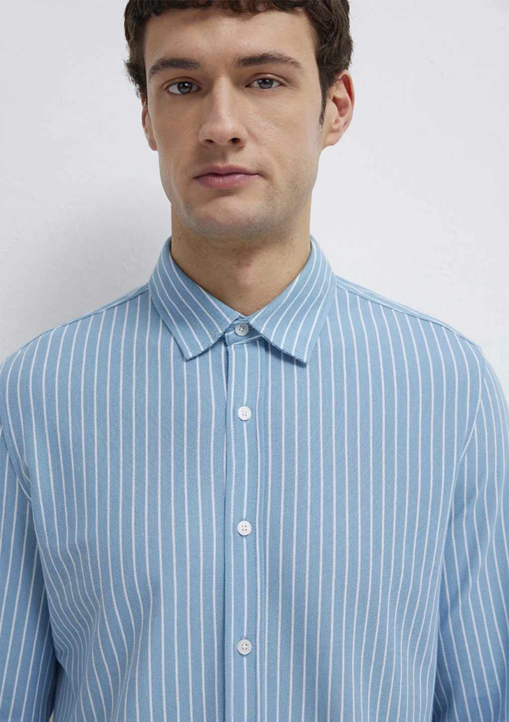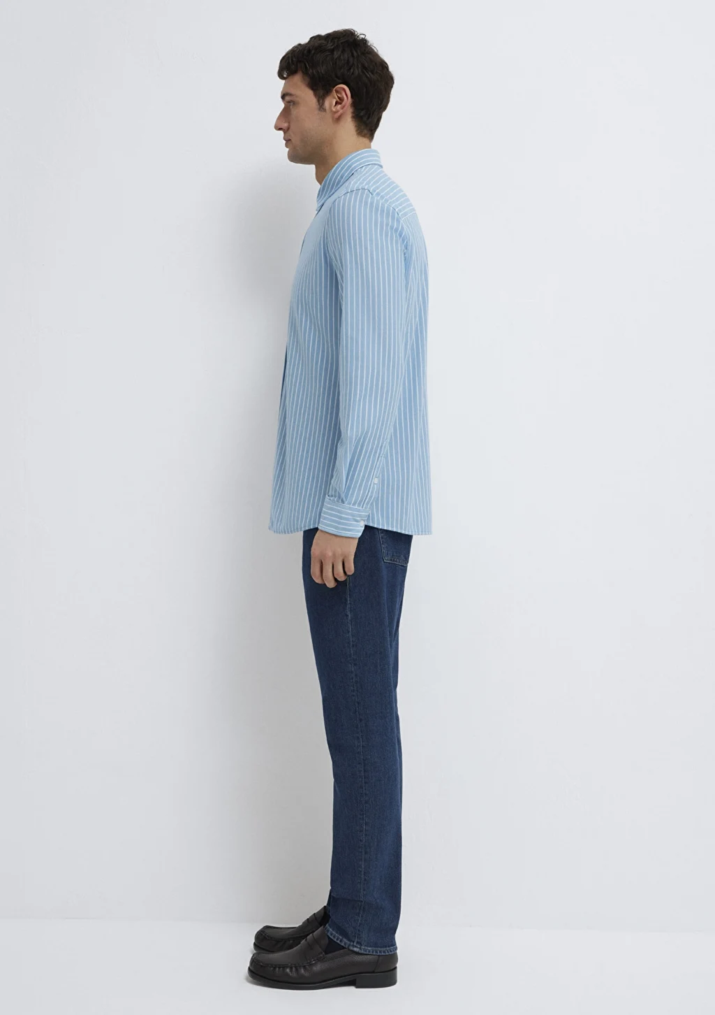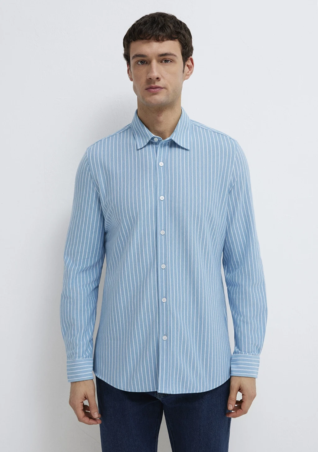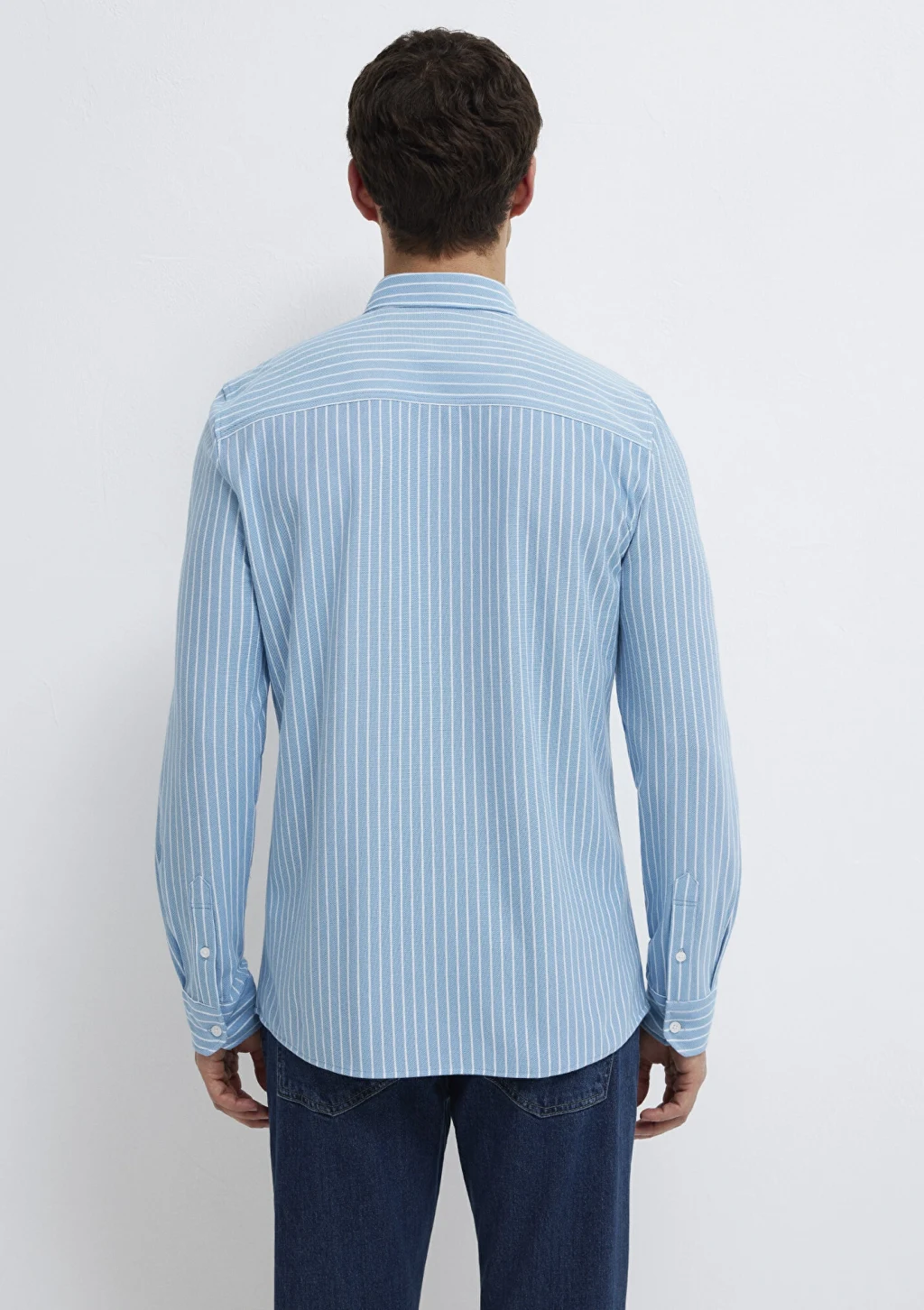 Mavi nin erkek koleksiyonundan Çizgili Mavi Gömlek.