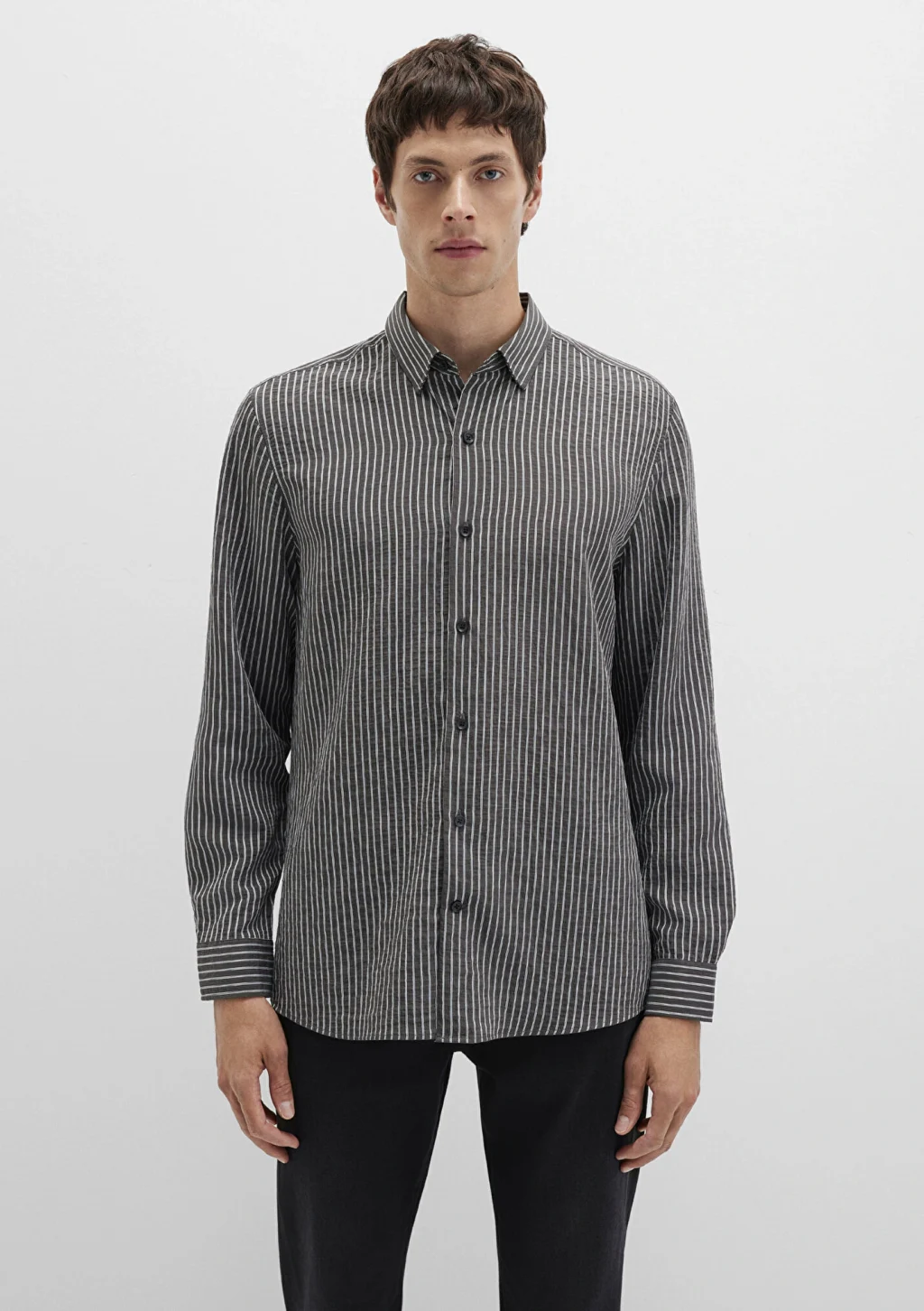 Mavi nin erkek koleksiyonundan Çizgili Antrasit Gömlek.