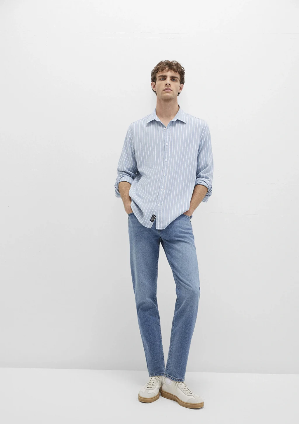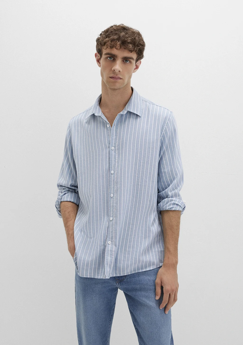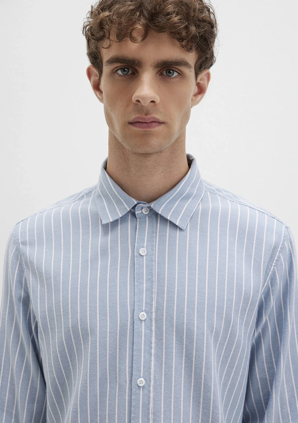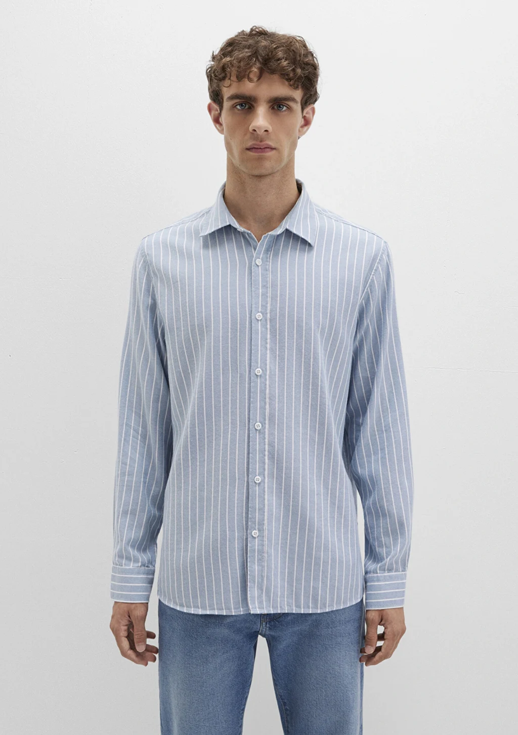 Mavi nin erkek koleksiyonundan Çizgili Mavi Gömlek.