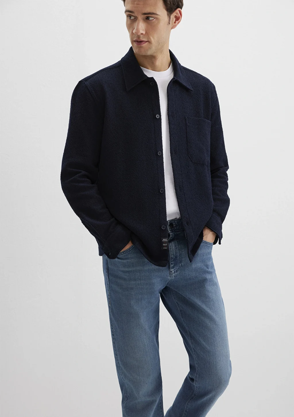 Mavi Black koleksiyonundan Mavi Black Lacivert Cepli Gömlek. Bir adet ön cep. Mavi Black, farklı tekniklerle zenginleştirilen güçlü logo detayları ve zamansız tasarımlarıyla şehirli erkeğin stilini modern bir çizgide yorumluyor. Modal ve Lyocell karışımlı yumuşak kumaşlar, rahat kesimlerle birleşerek şıklığı konforla buluşturuyor.