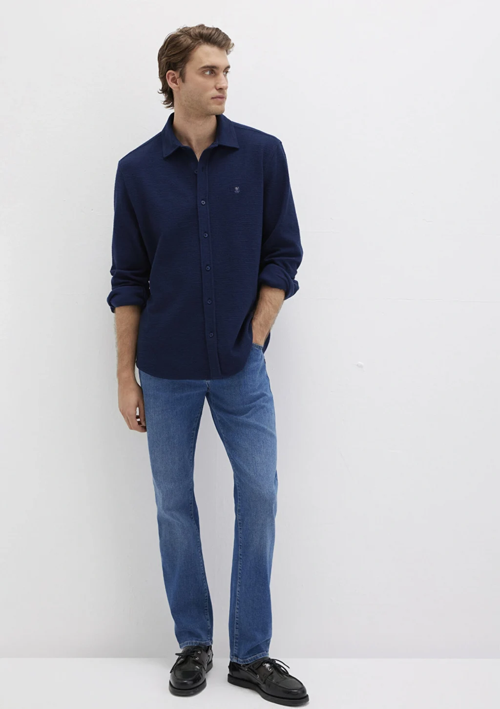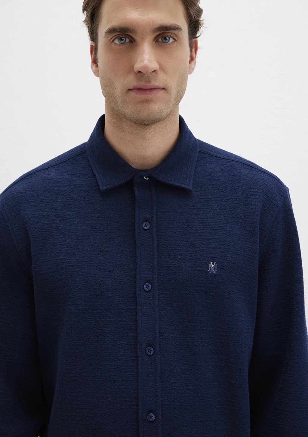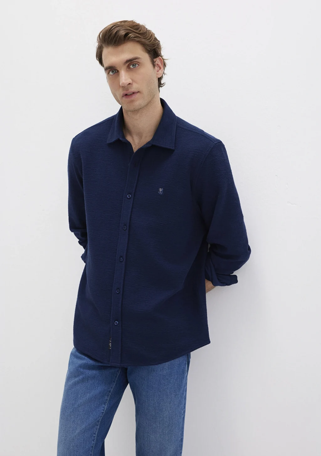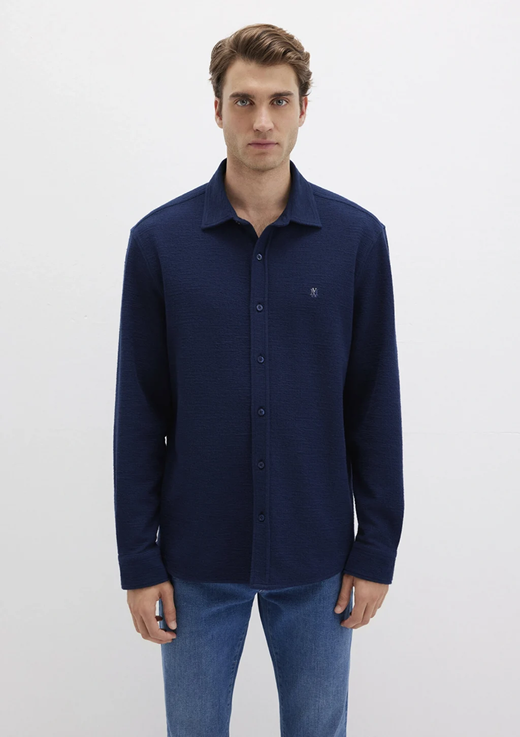 Mavi nin erkek koleksiyonundan M Logo Nakışlı Lacivert Örme Gömlek.