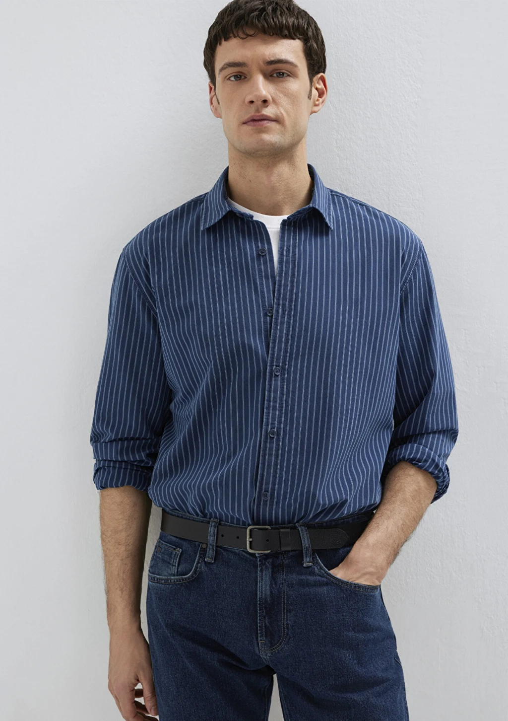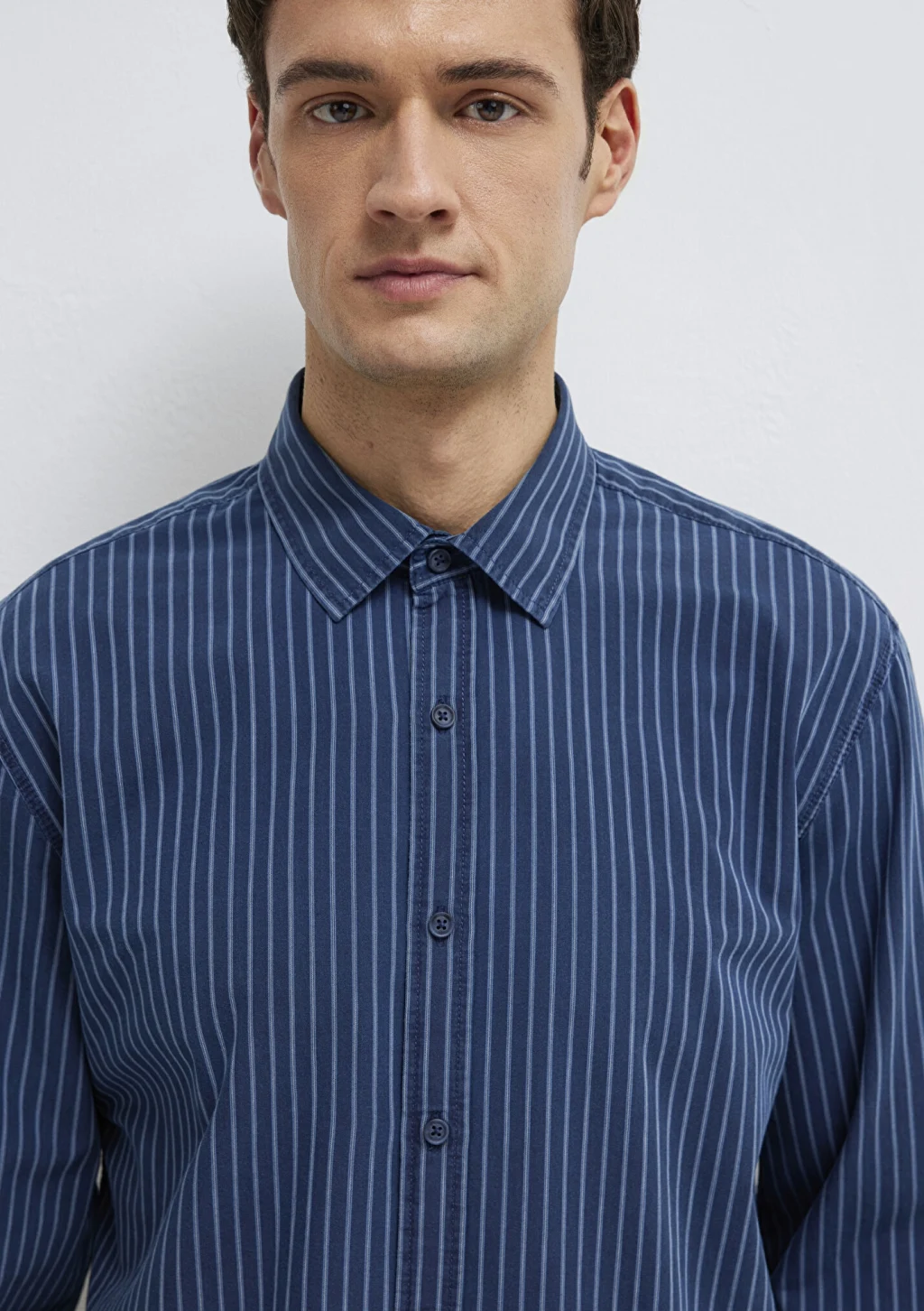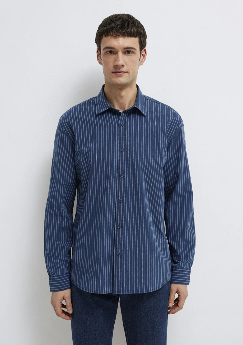 Mavi nin erkek koleksiyonundan Çizgili Lacivert Gömlek.