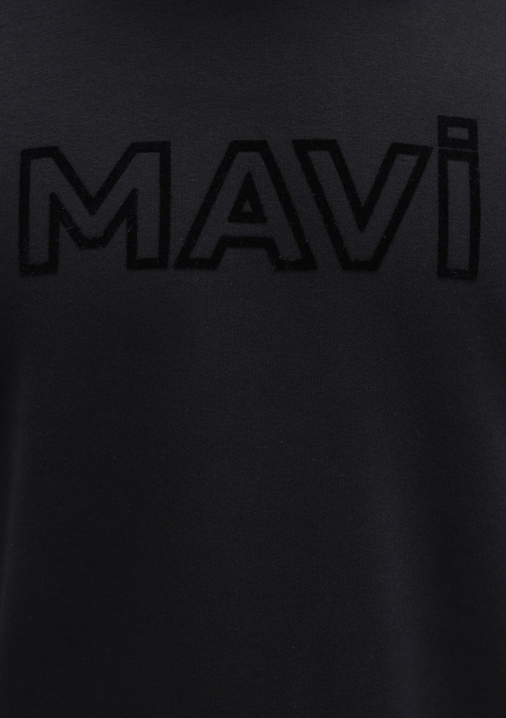 Mavi nin erkek koleksiyonundan Mavi Logo Baskılı Kapüşonlu Siyah Sweatshirt. Şardonlu, iple ayarlanabilir kapüşon.
