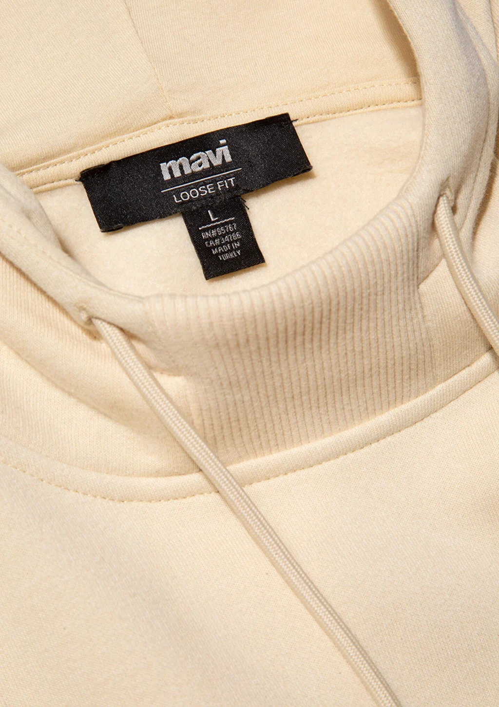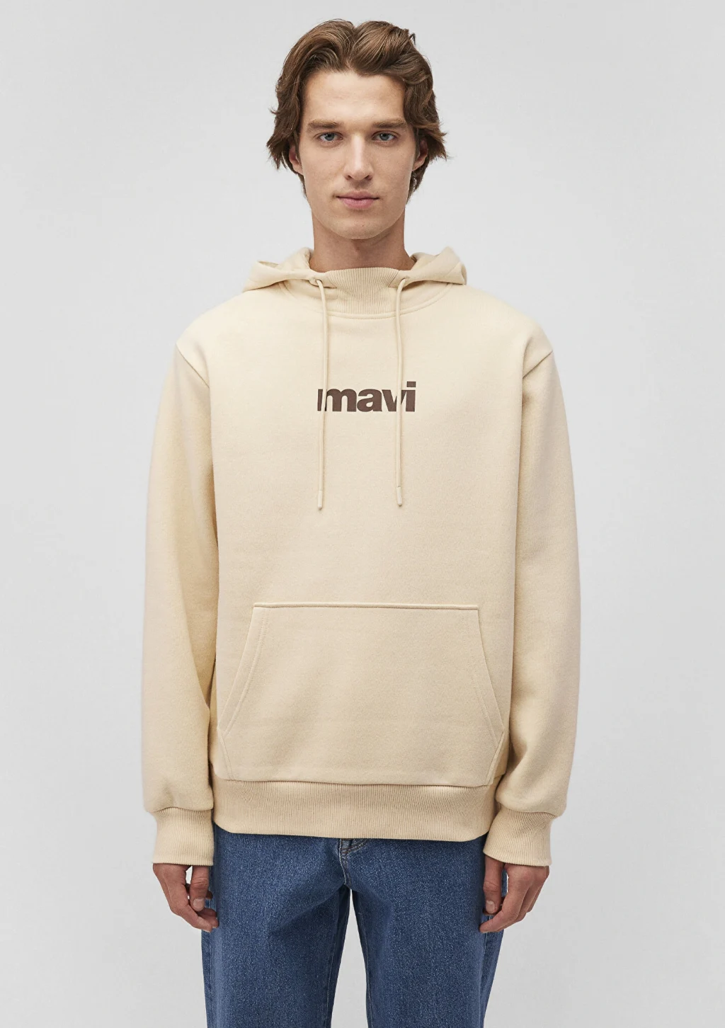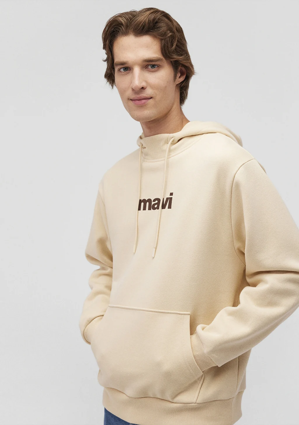 Mavi nin erkek koleksiyonundan Mavi Logo Baskılı Kapüşonlu Bej Sweatshirt. Şardonlu, iple ayarlanabilir kapüşon, içi şardonlu kanguru cep, yarı dik yaka.