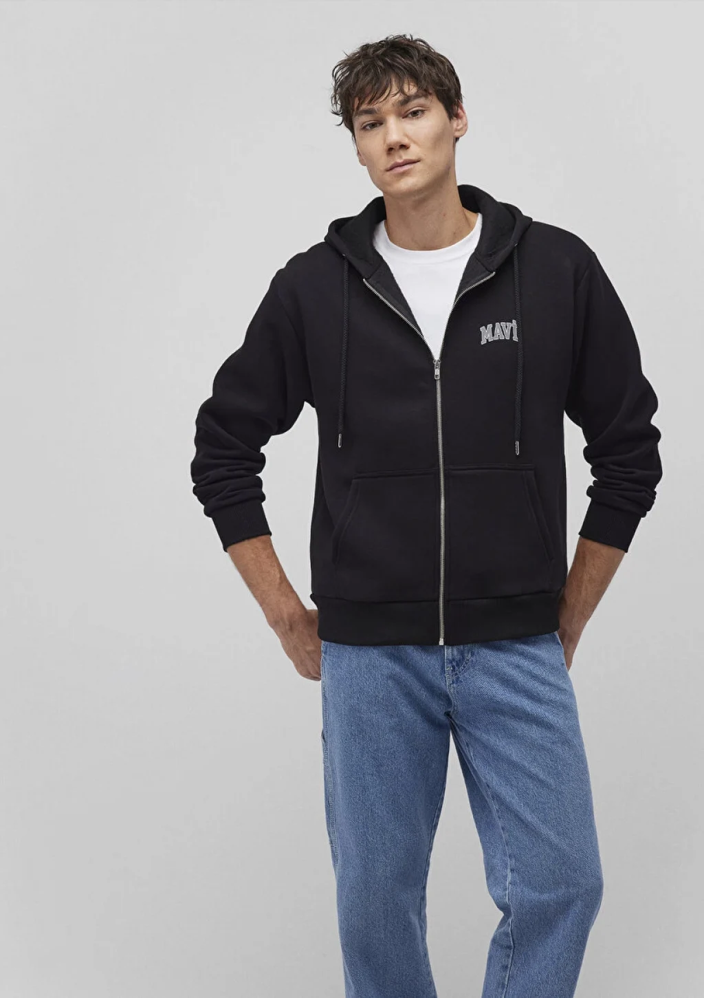 Mavi nin erkek koleksiyonundan Mavi Logo Baskılı Fermuarlı Siyah Sweatshirt. Ürün özellikleri, şardonlu, fermuarlı, iple ayarlanabilir kapüşon, içi şardonlu kanguru cep.