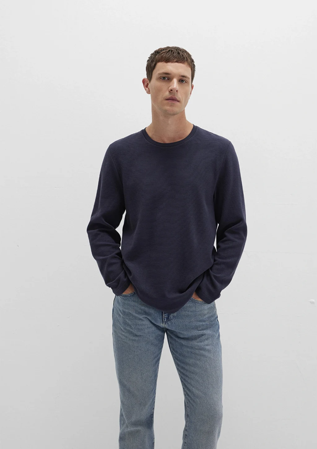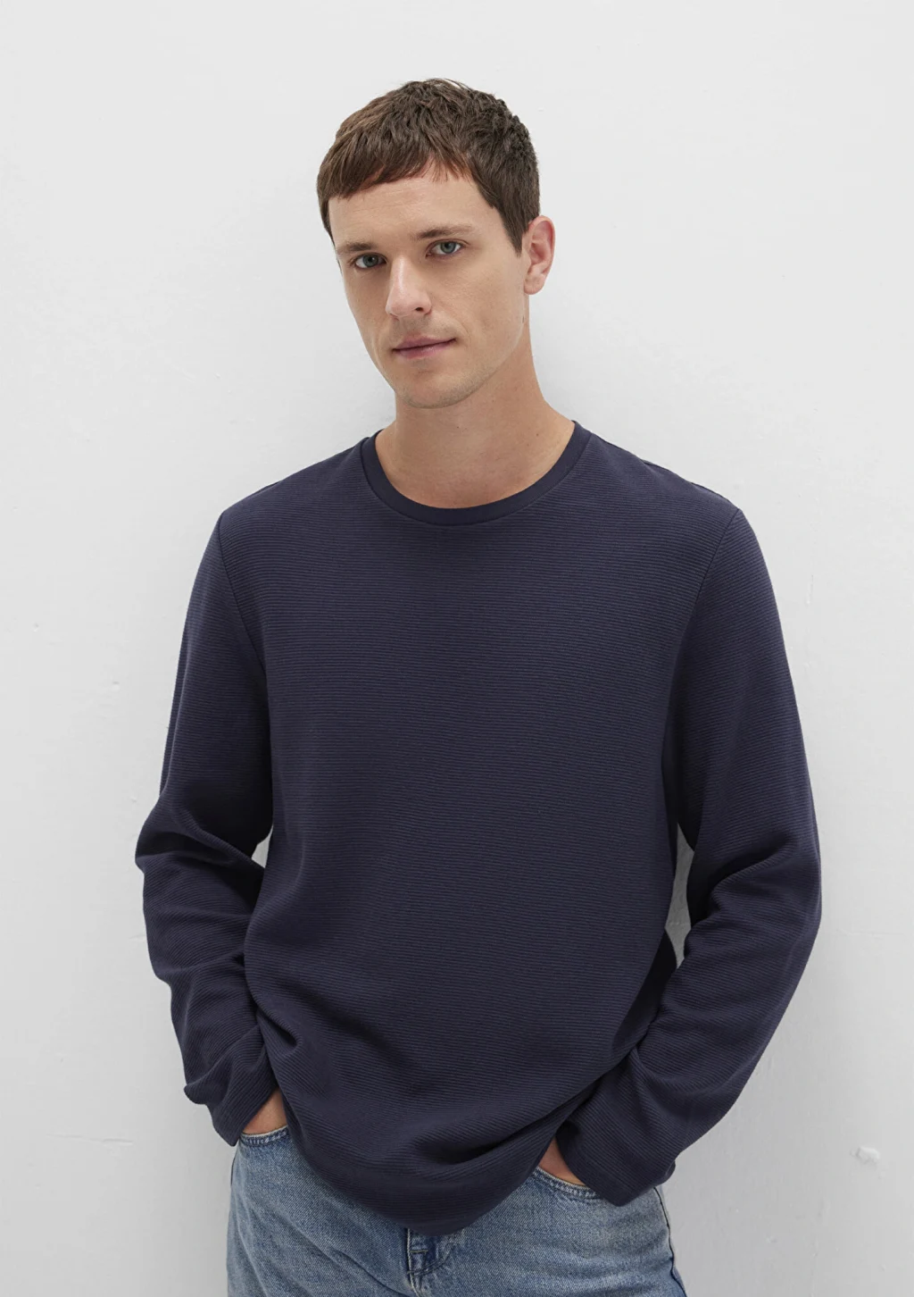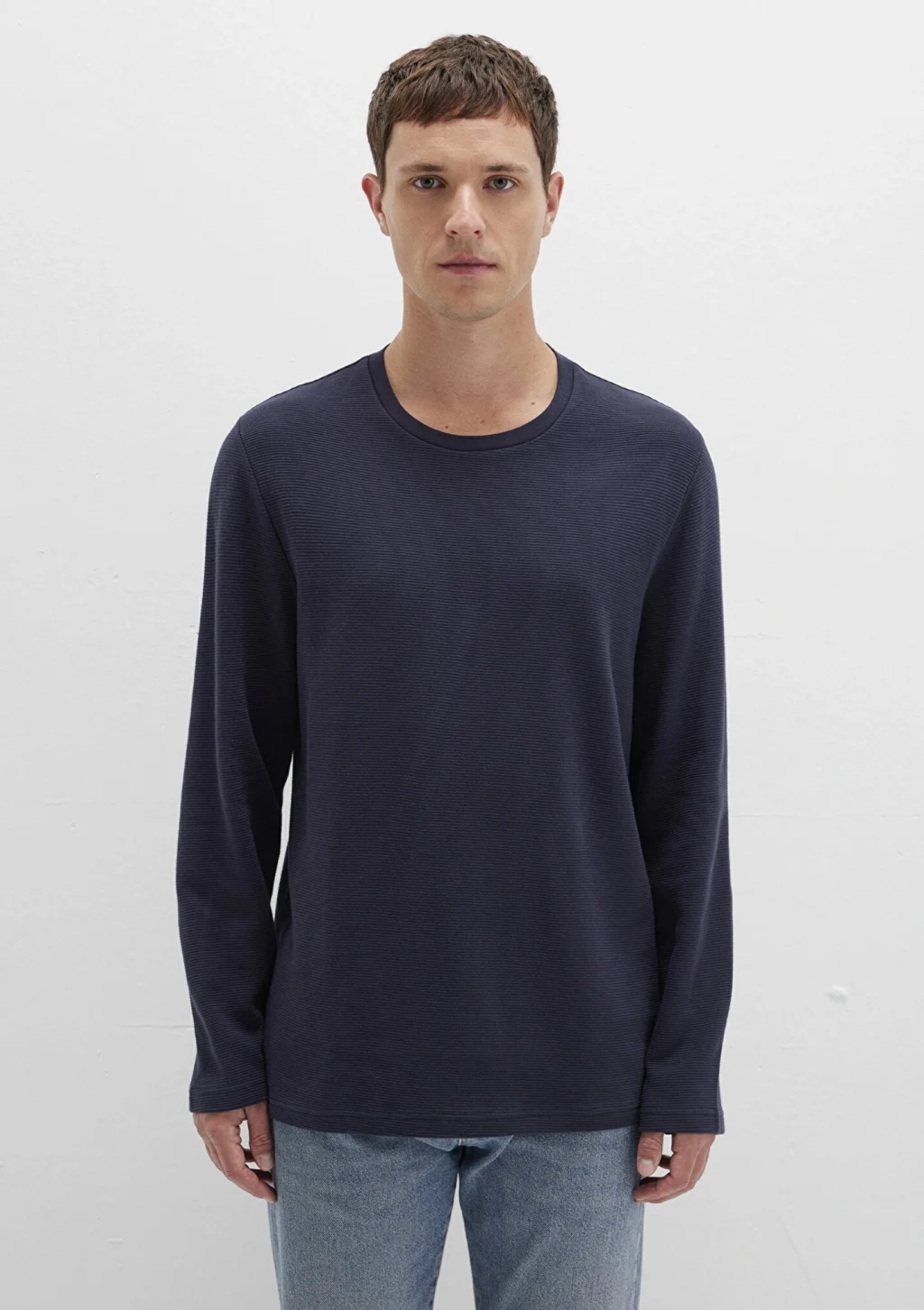 Mavi nin erkek koleksiyonundan Uzun Kollu Dokulu Lacivert Tişört.