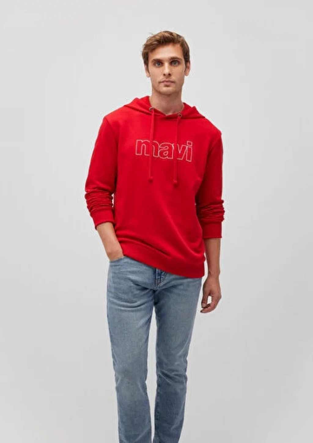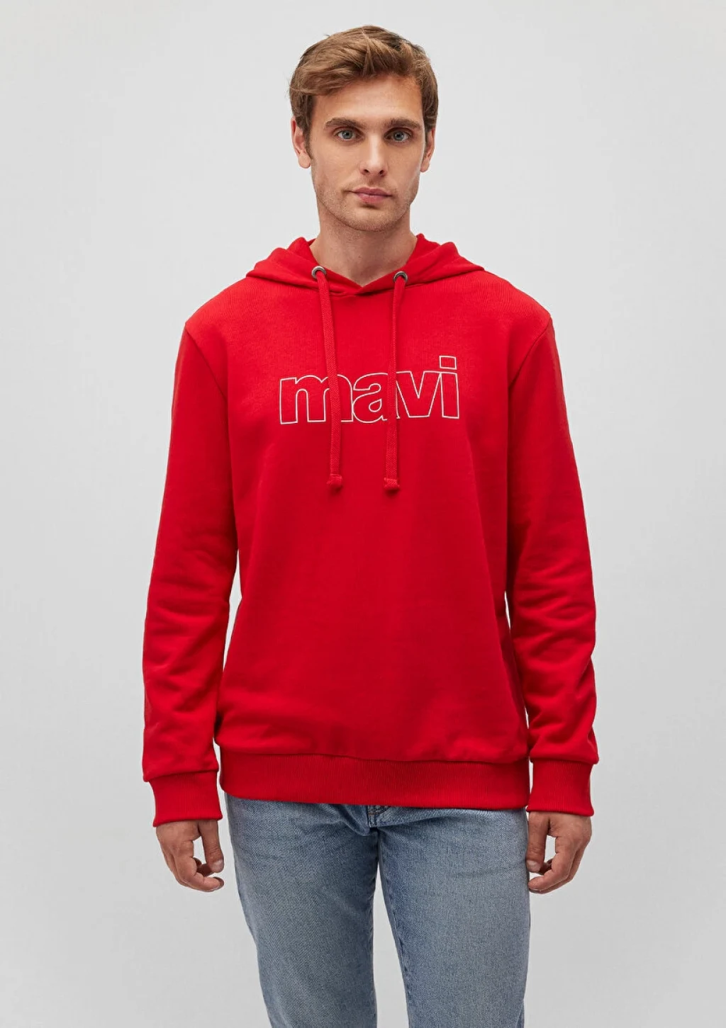 Mavi nin erkek koleksiyonundan Mavi Logo Baskılı Kapüşonlu Kırmızı Sweatshirt. Ürün özellikleri, şardonsuz, iple ayarlanabilir kapüşon.