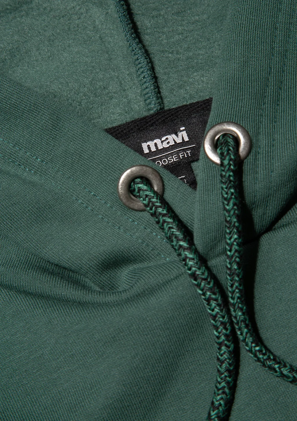 Mavi nin erkek koleksiyonundan Mavi Logo Nakışlı Kapüşonlu Yeşil Sweatshirt. Şardonlu, iple ayarlanabilir kapüşon, içi şardonlu kanguru cep.
