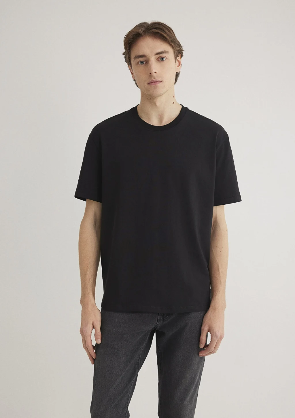 Yüzde yüz pamuk, loose fit, rahat kesim tişört. Bisiklet yaka. Kısa kol. Siyah Basic Tişört.