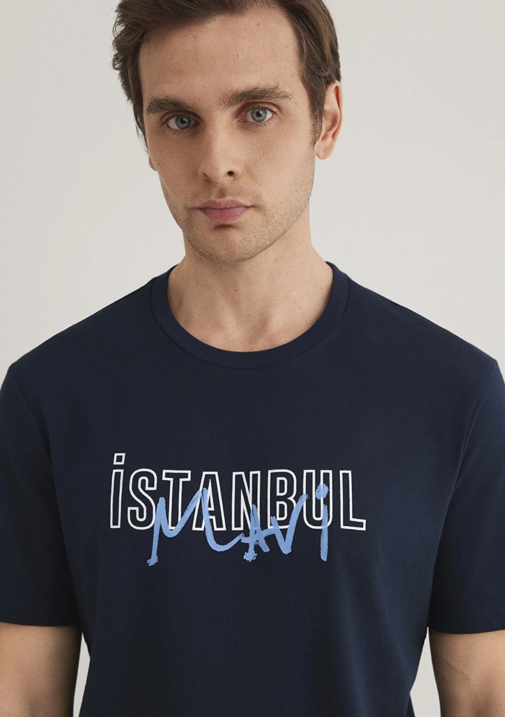 Bu yüzde yüz pamuklu tişört, orta ağırlıkta bir kumaşa sahip olup bisiklet yaka tasarımıyla öne çıkıyor. Lacivert renkteki düz dokusu ve ön kısmındaki İstanbul temalı baskısıyla dikkat çeken bu ürün, günlük kullanım için idealdir. Bu tişört, Mavinin İstanbul Tişörtleri Serisi orijinal ürünüdür. İstanbulun yaratıcılık ve tasarıma verdiği ilhamı gösterir, İstanbulda doğmuş bir moda fenomeninin parçasıdır, İstanbulu sevenlerin yarattığı modanın bir simgesidir. Bu tişörtü giyen dünyanın neresinde olursa olsun, İstanbuldan bir parçayı içinde taşıyor demektir.