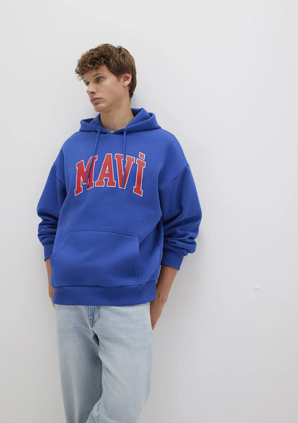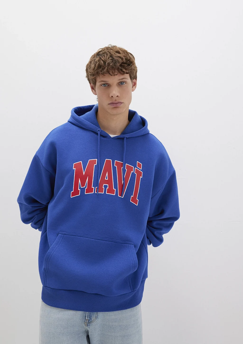 Mavi nin erkek koleksiyonundan Mavi Logo Baskılı Kapüşonlu Mavi Sweatshirt.