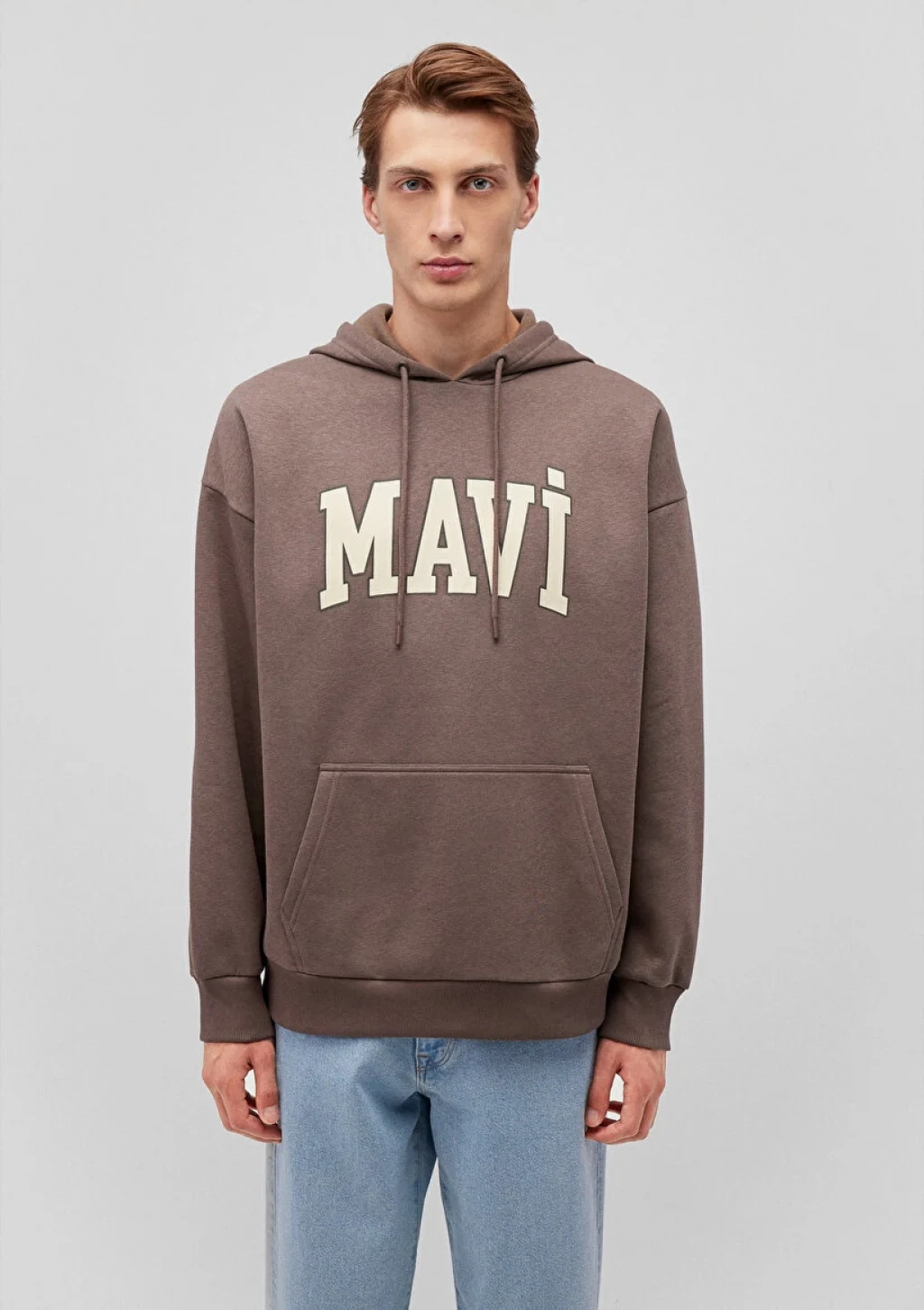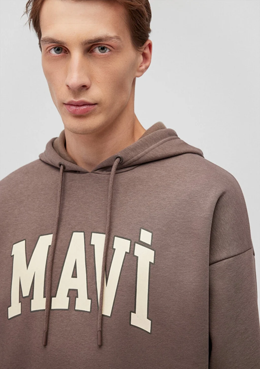 Mavi nin erkek koleksiyonundan Mavi Logo Baskılı Kapüşonlu Kahverengi Sweatshirt. Ürün özellikleri, şardonlu, iple ayarlanabilir kapüşon, içi şardonlu kanguru cep.