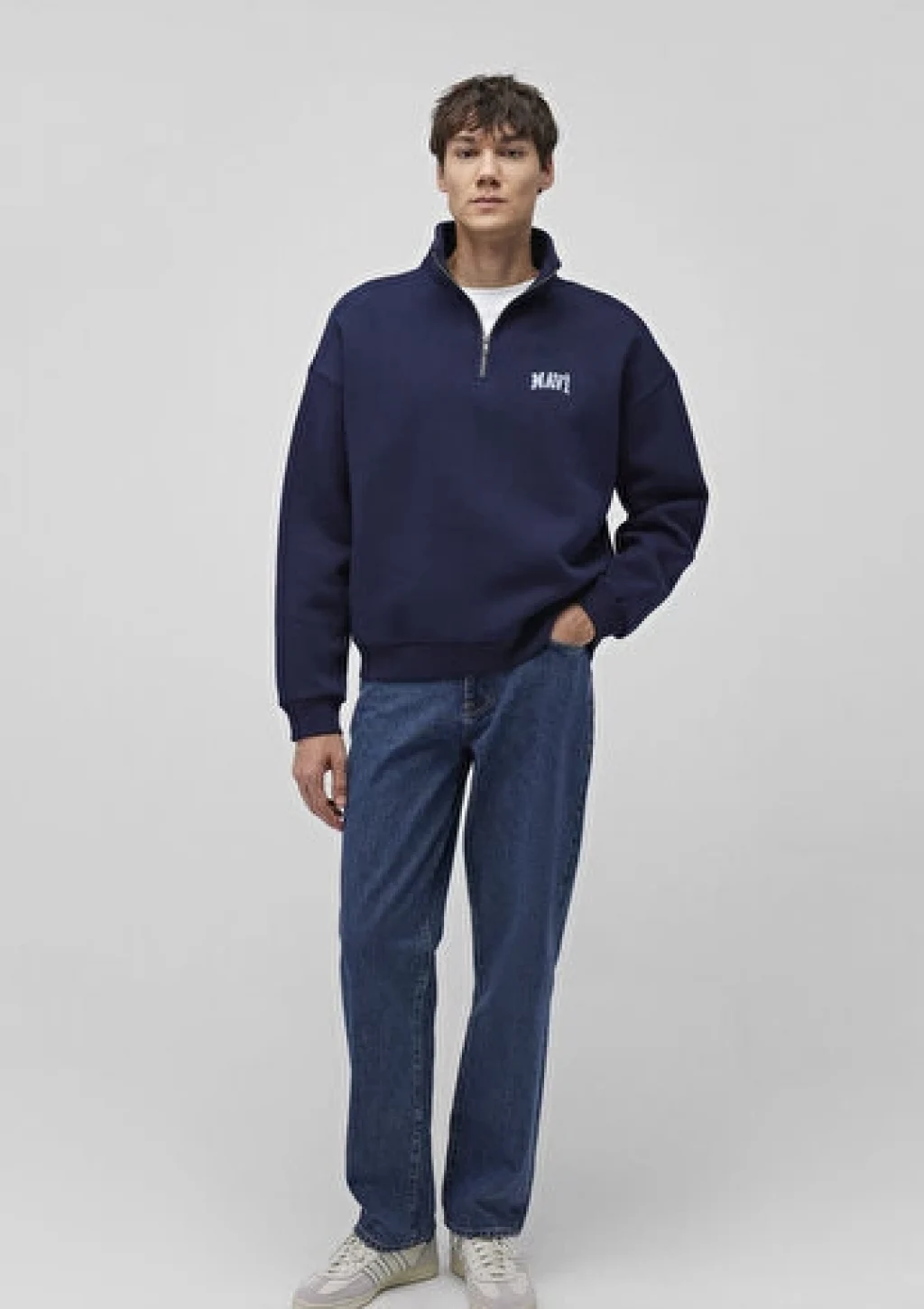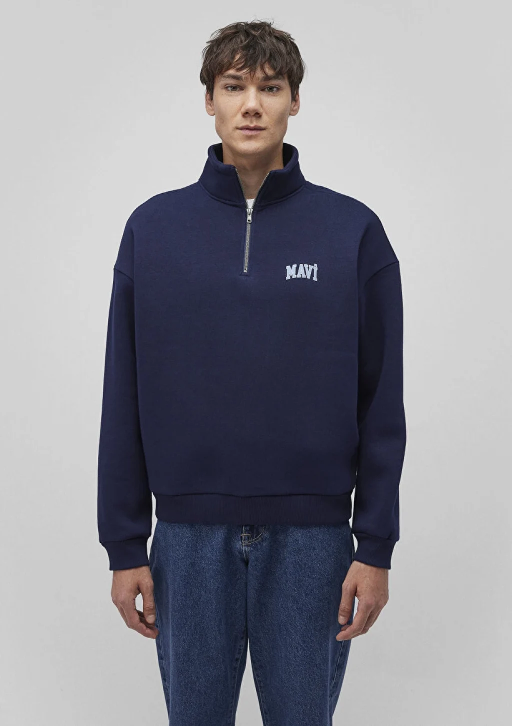 Mavi nin erkek koleksiyonundan Mavi Logo Baskılı Yarı Fermuarlı Lacivert Sweatshirt