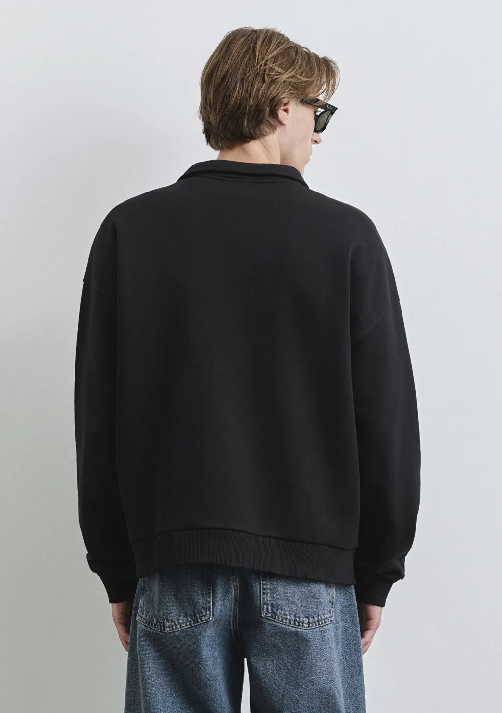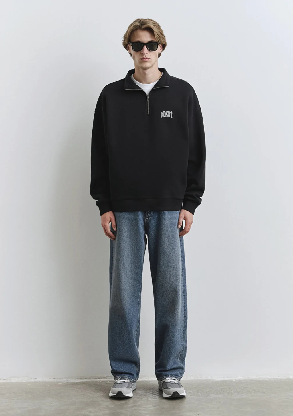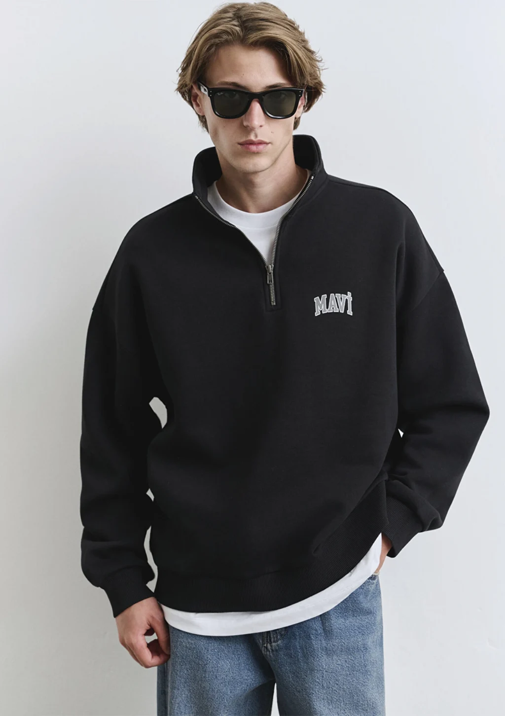 Mavi nin erkek koleksiyonundan Mavi Logo Baskılı Yarı Fermuarlı Siyah Sweatshirt.