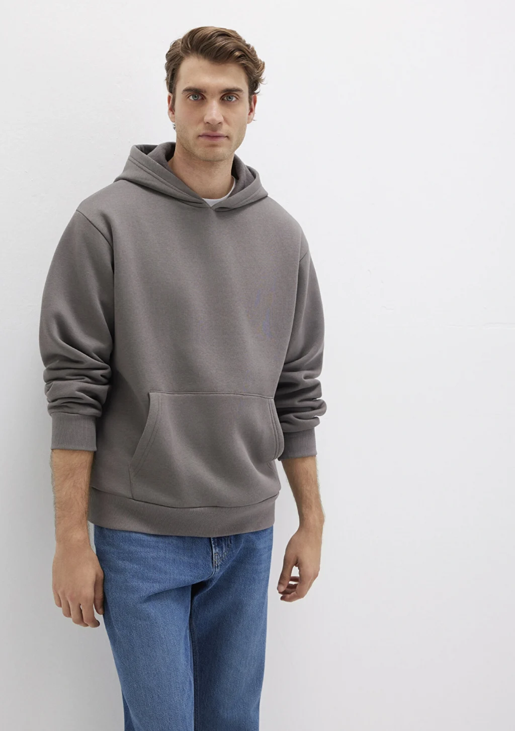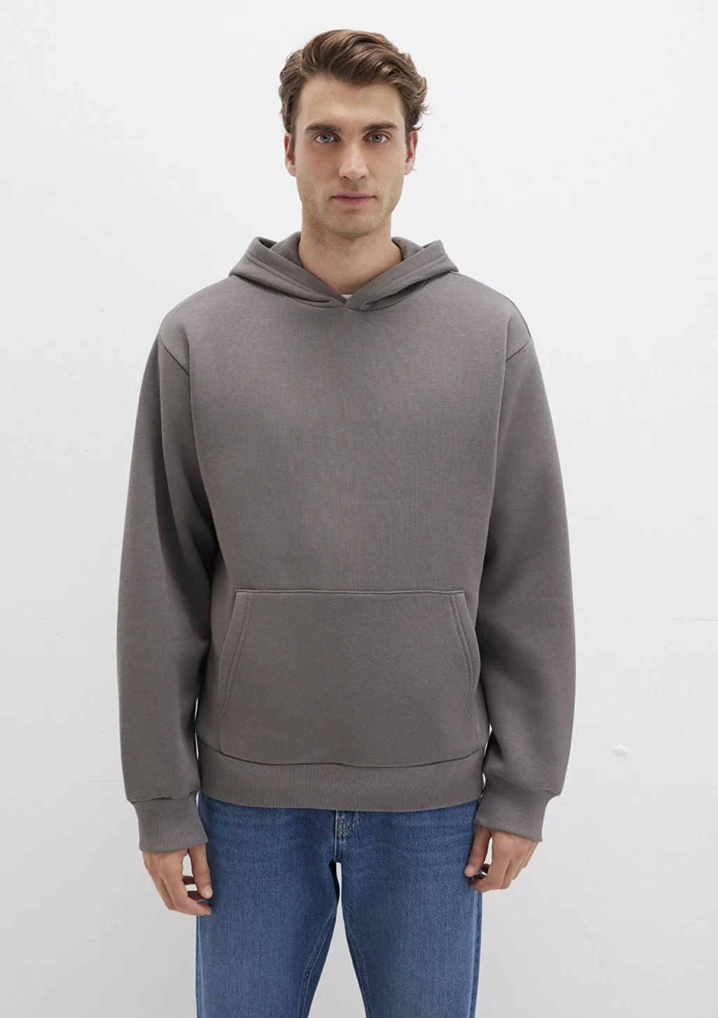 Mavi nin erkek koleksiyonundan Kapüşonlu Antrasit Basic Sweatshirt. Şardonlu, kapüşonlu, içi şardonlu kanguru cep.