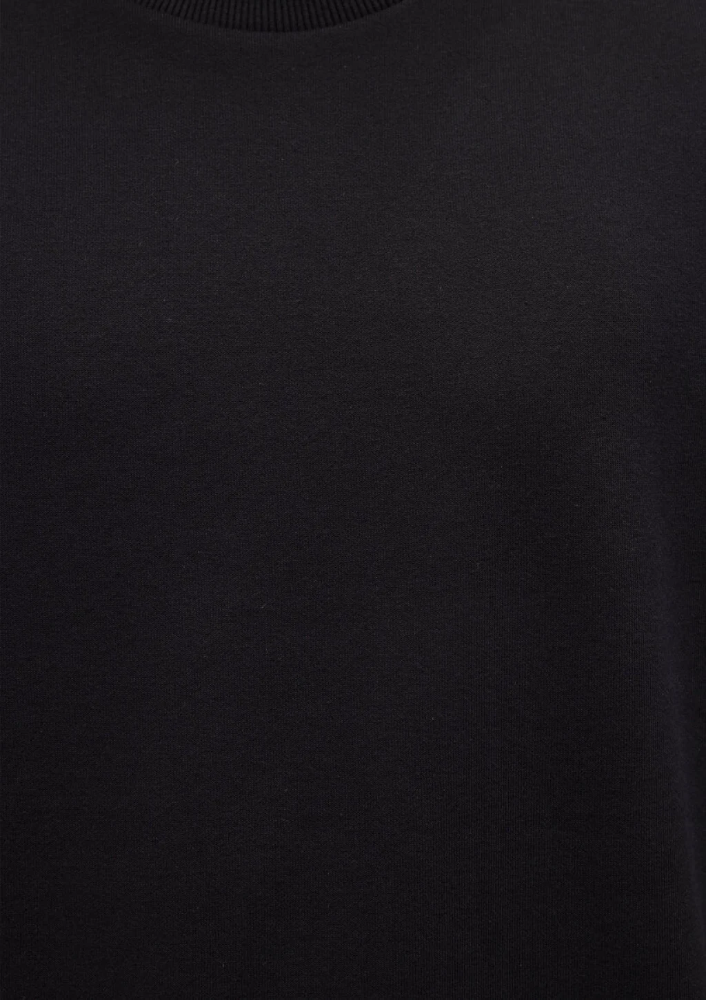 XSIDE Siyah Bisiklet Yaka Baskılı Erkek Kalın Sweatshirt