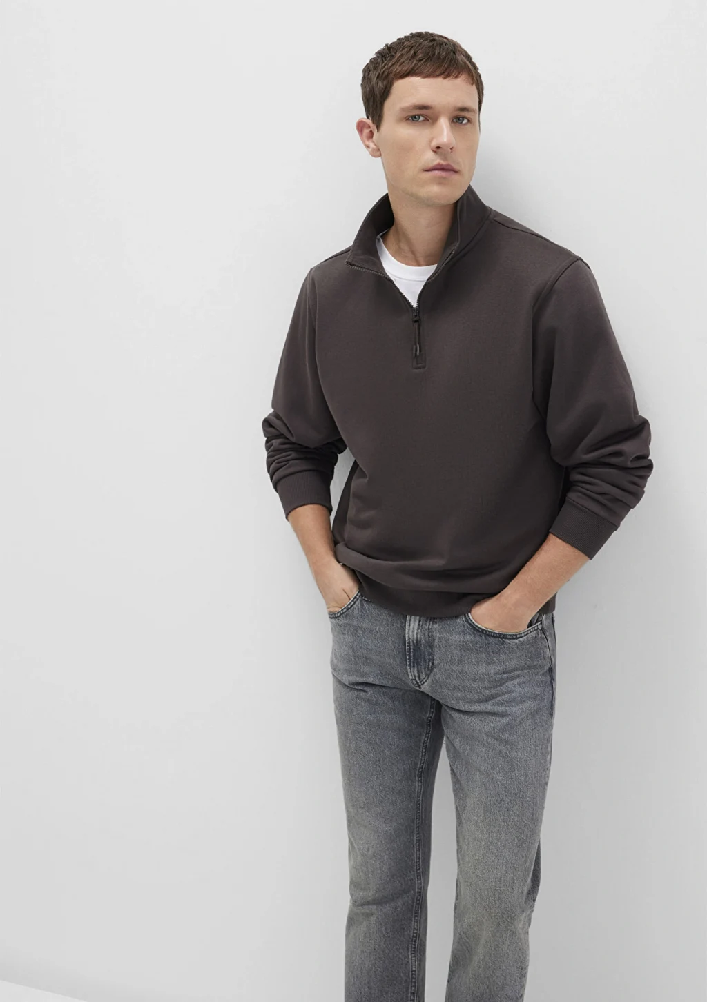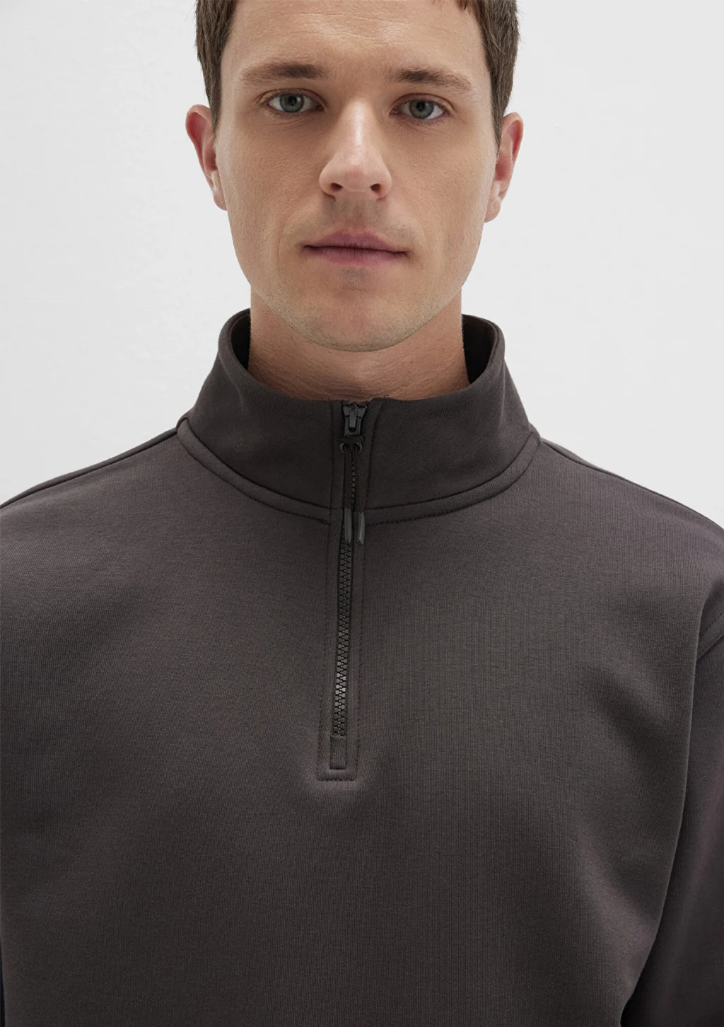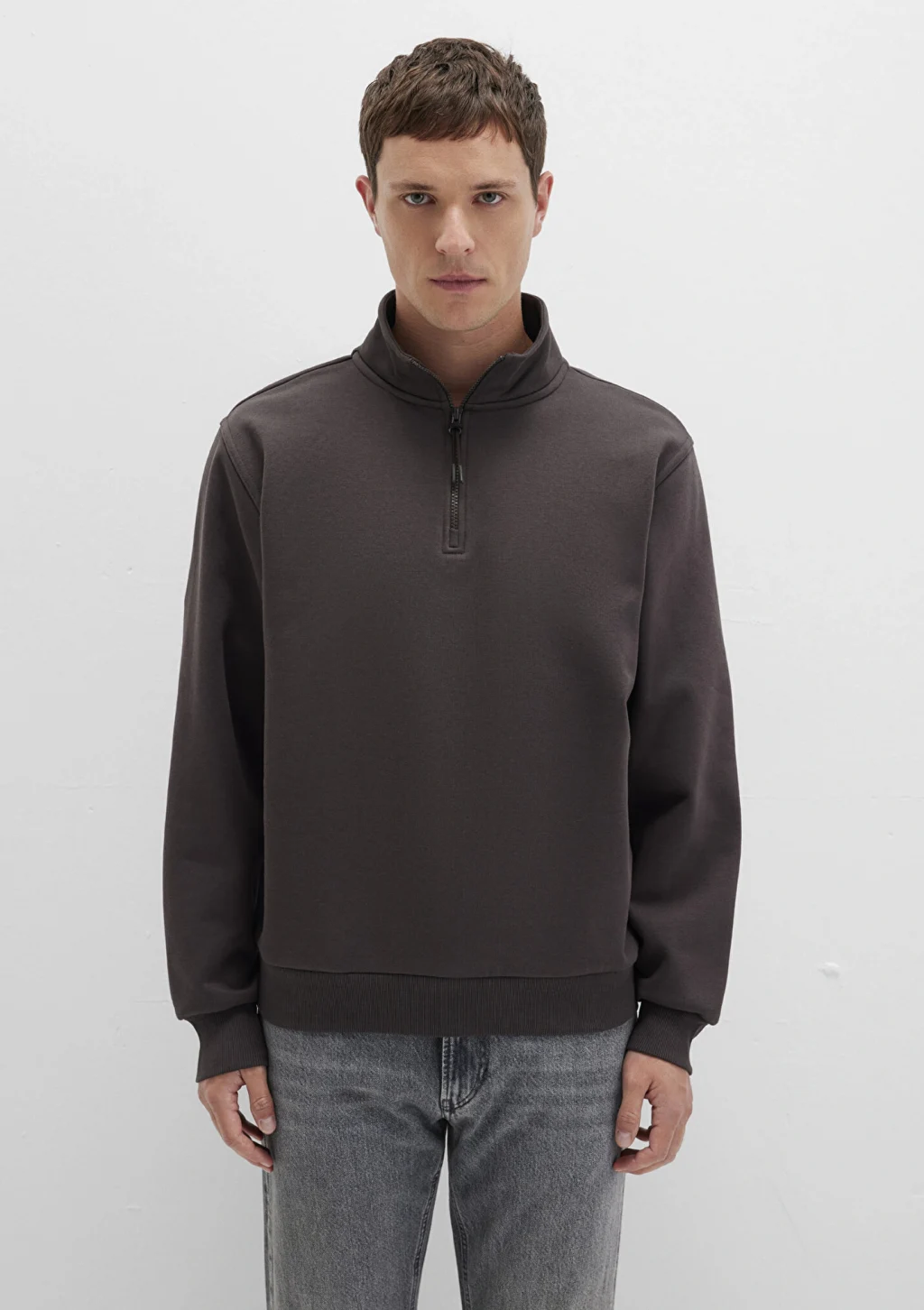 Mavi nin erkek koleksiyonundan Yarı Fermuarlı Kahverengi Basic Sweatshirt.