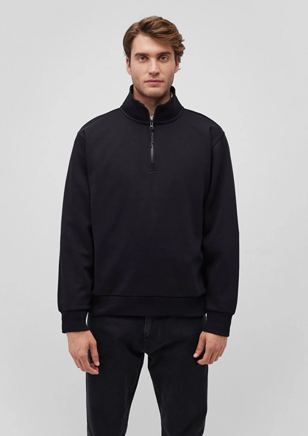 Mavi nin erkek koleksiyonundan Yarı Fermuarlı Siyah Basic Sweatshirt. Ürün özellikleri, şardonlu, yarı fermuarlı dik yaka.