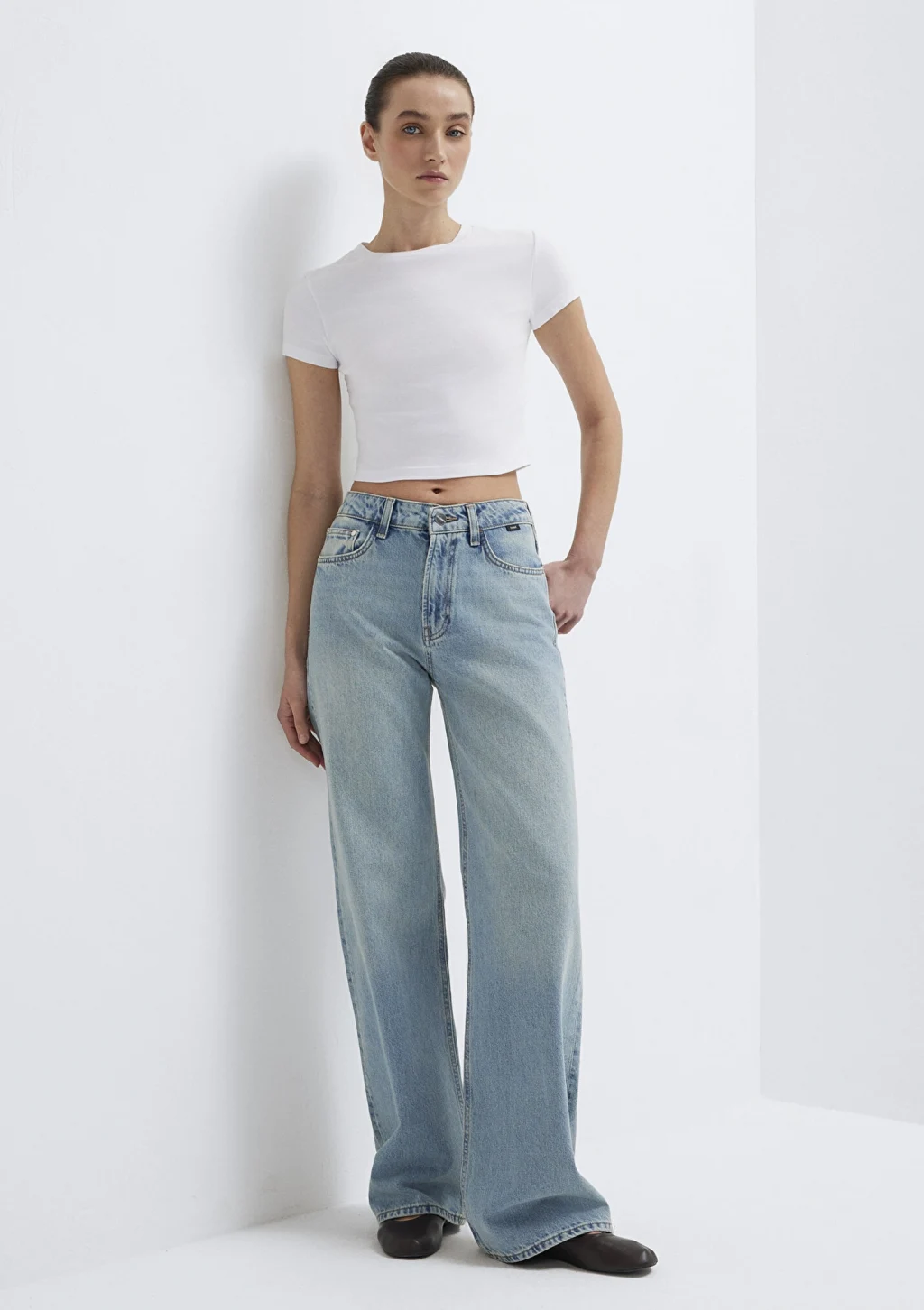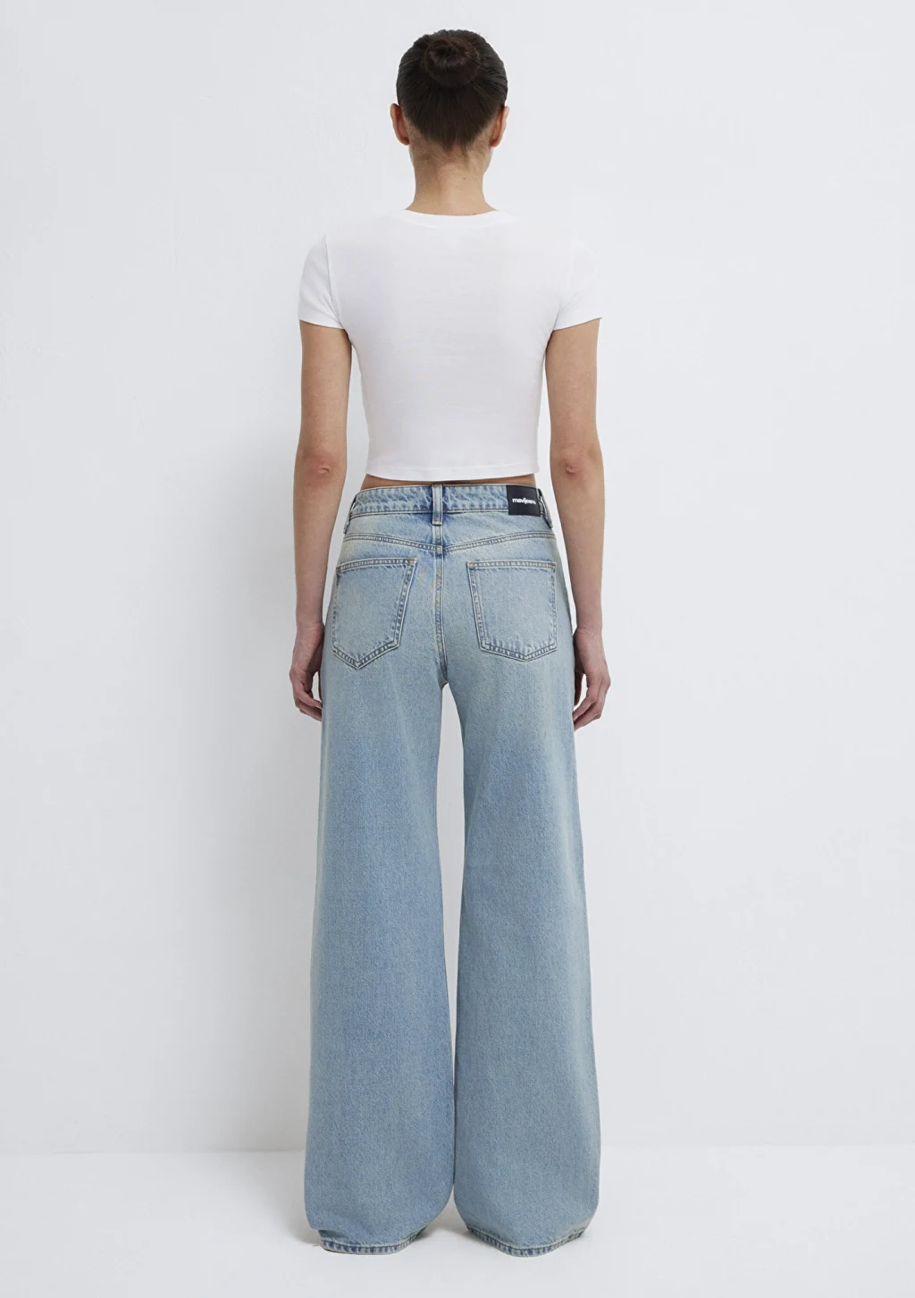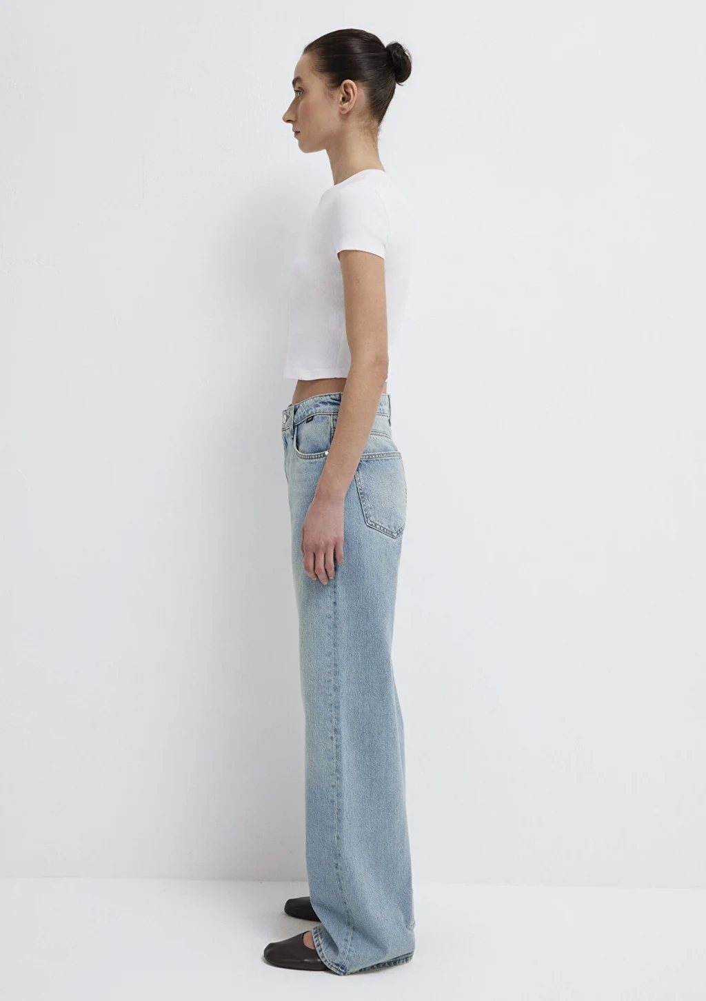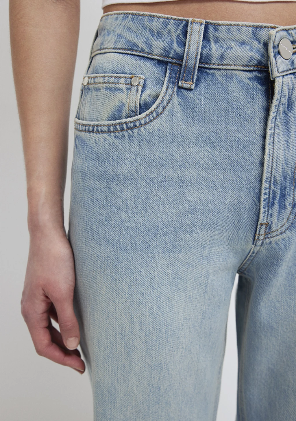 Mavi nin denim koleksiyonundan Malibu Iconic Puslu Açık Mavi. Bel ve basene oturan, basenden sonra açılarak genişleyen Wide Leg Jean. Geniş paça.