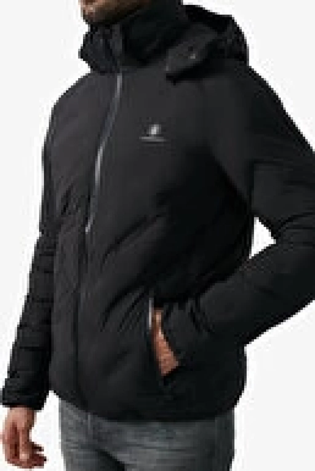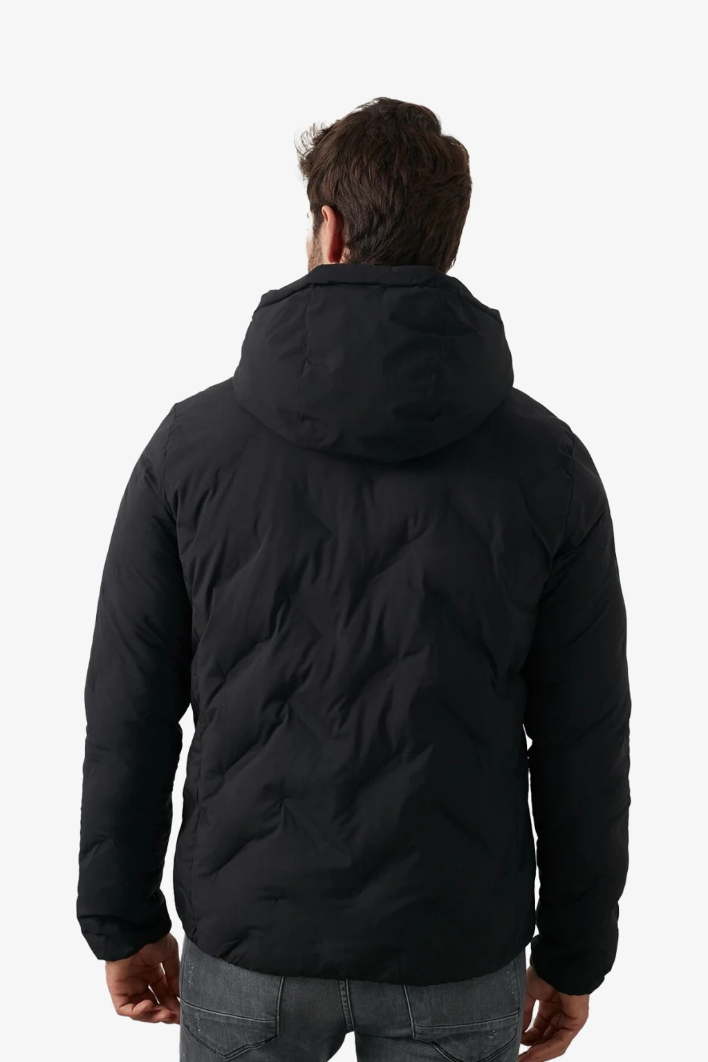 XSIDE Siyah Standart Kalıp Kapüşonlu Erkek Şişme Mont