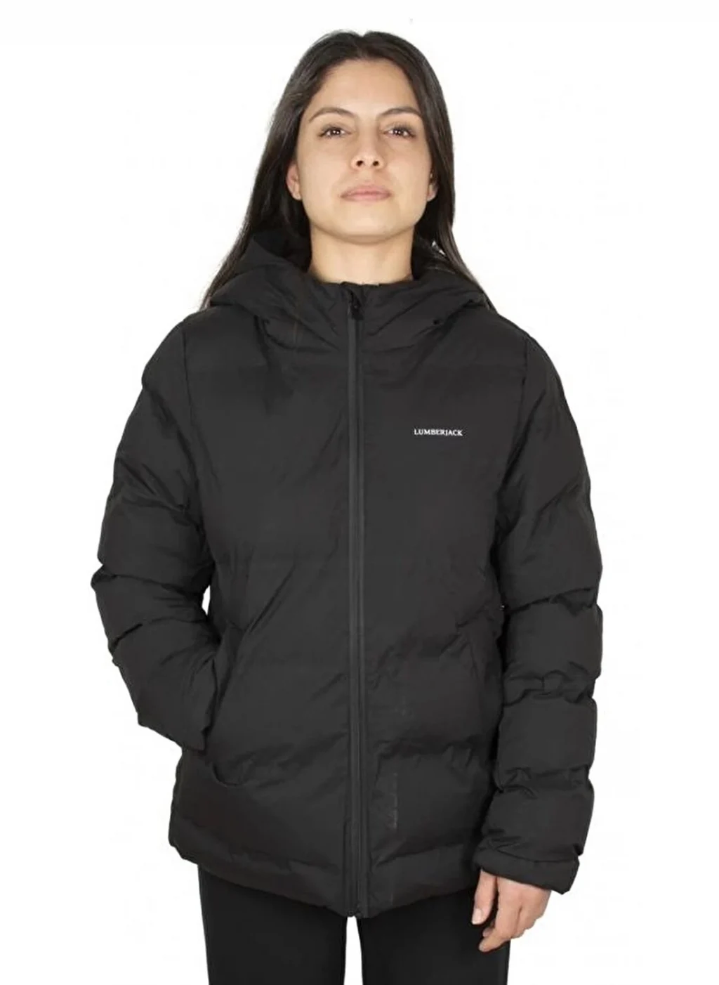 LCW Vision Siyah Kadın Kapüşonlu Düz Şişme Mont