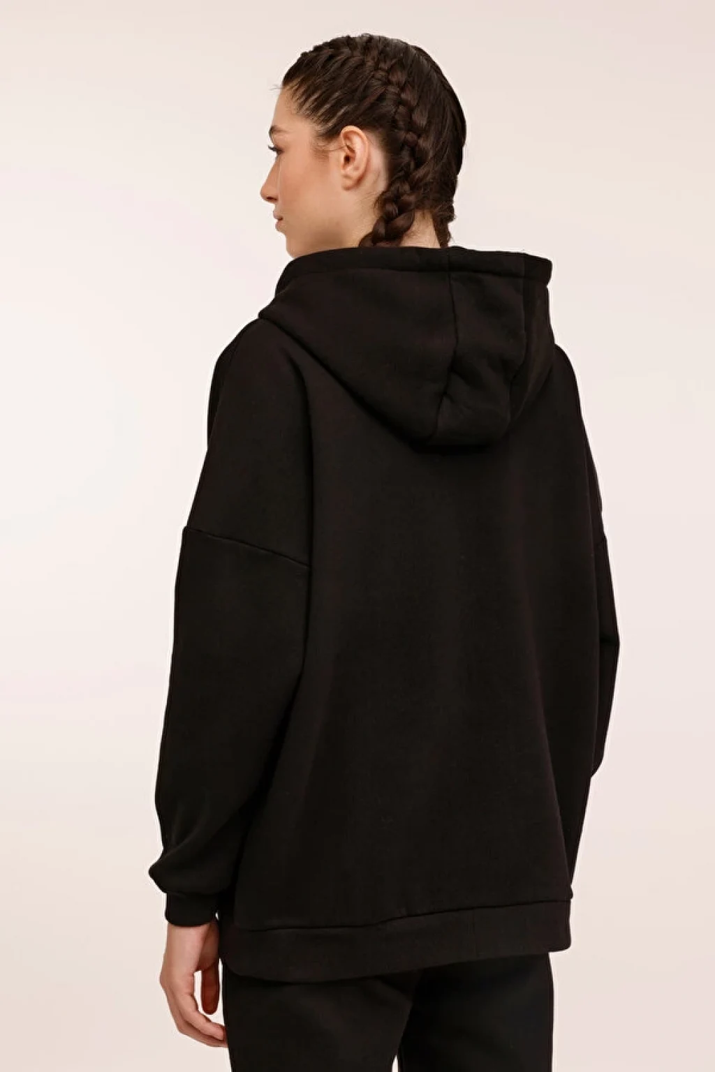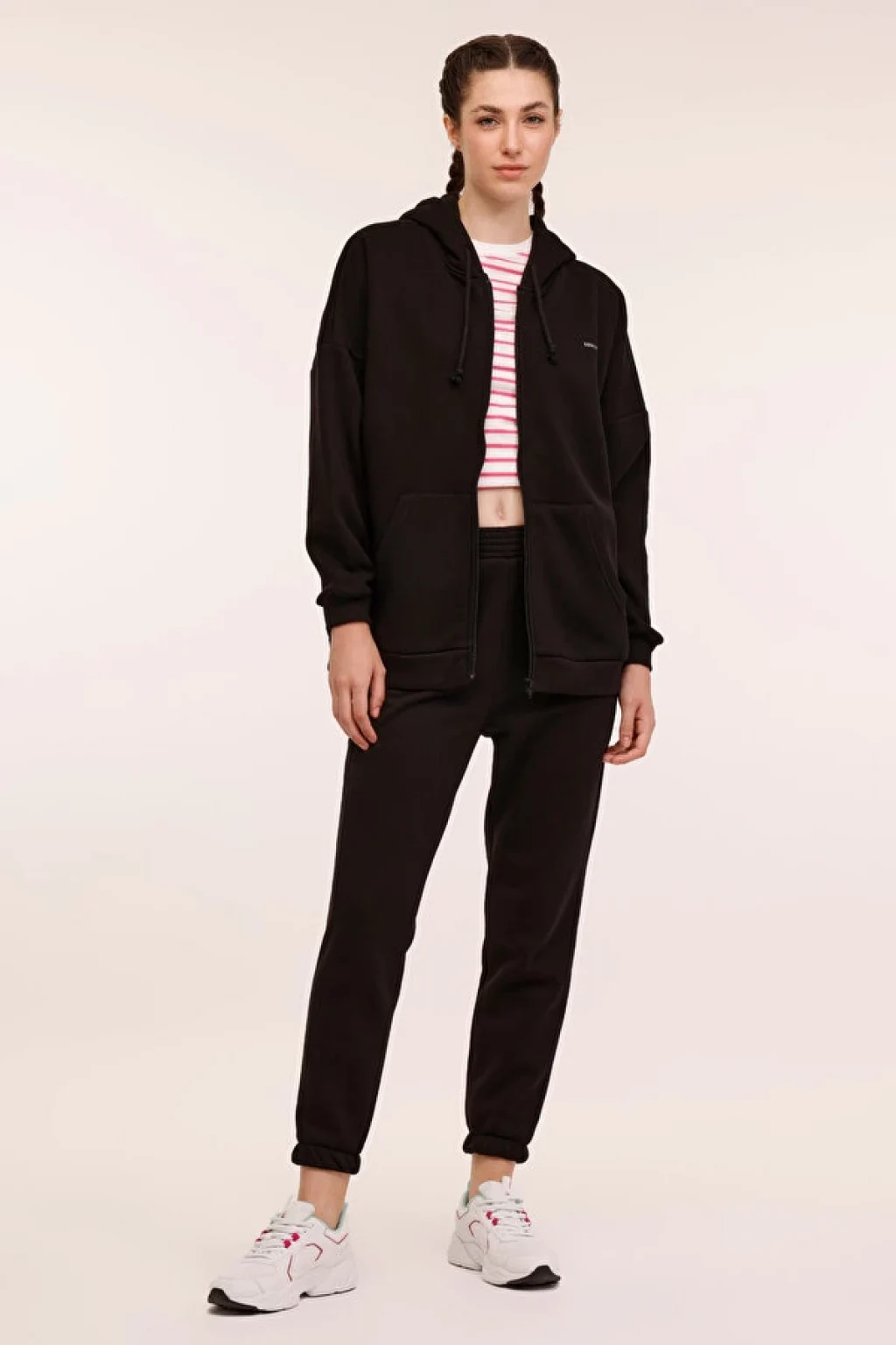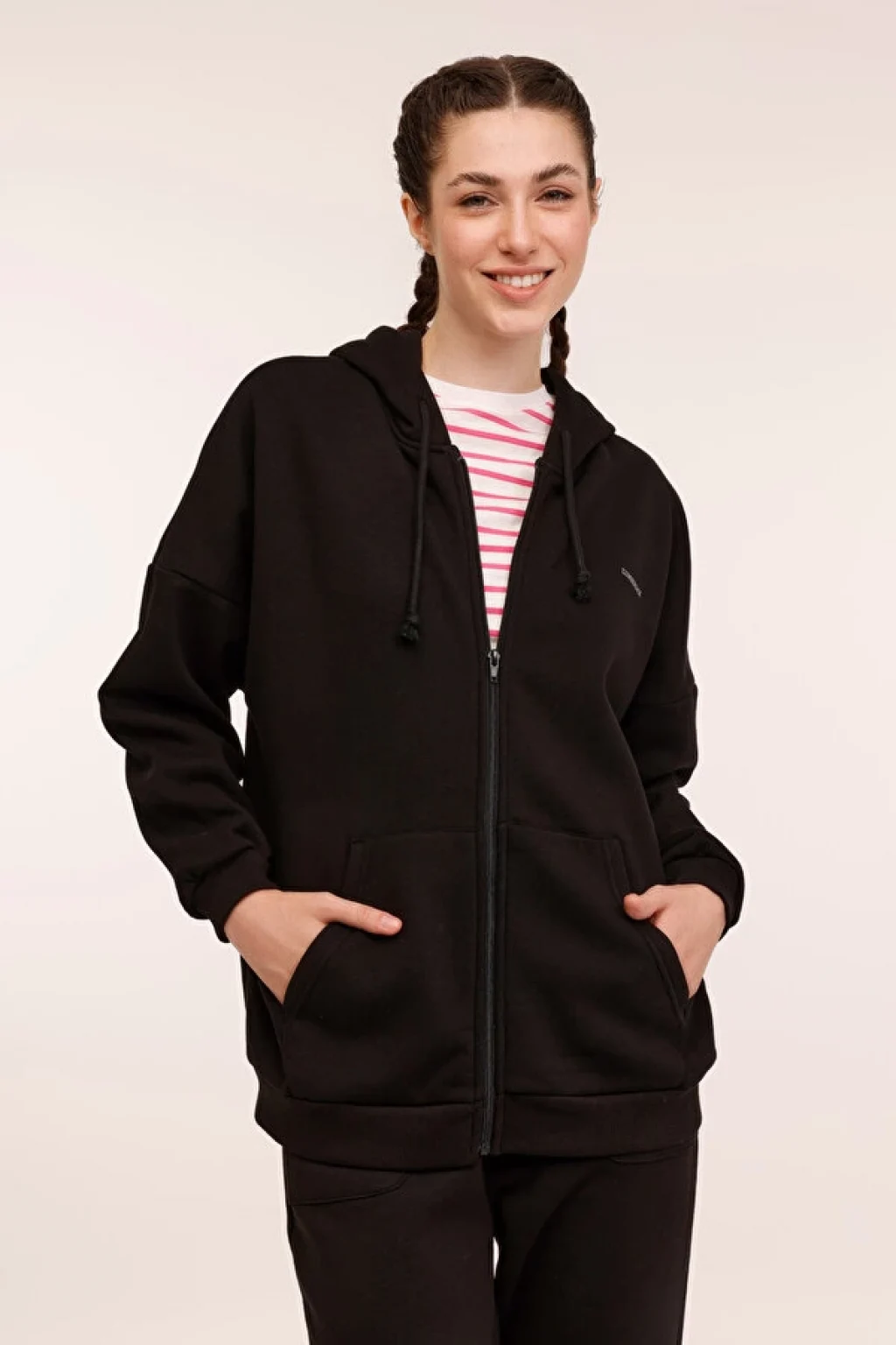 Defacto V4233 Siyah Oversize Geniş Kalıp Kapüşonlu Fermuarlı Sweatshirt