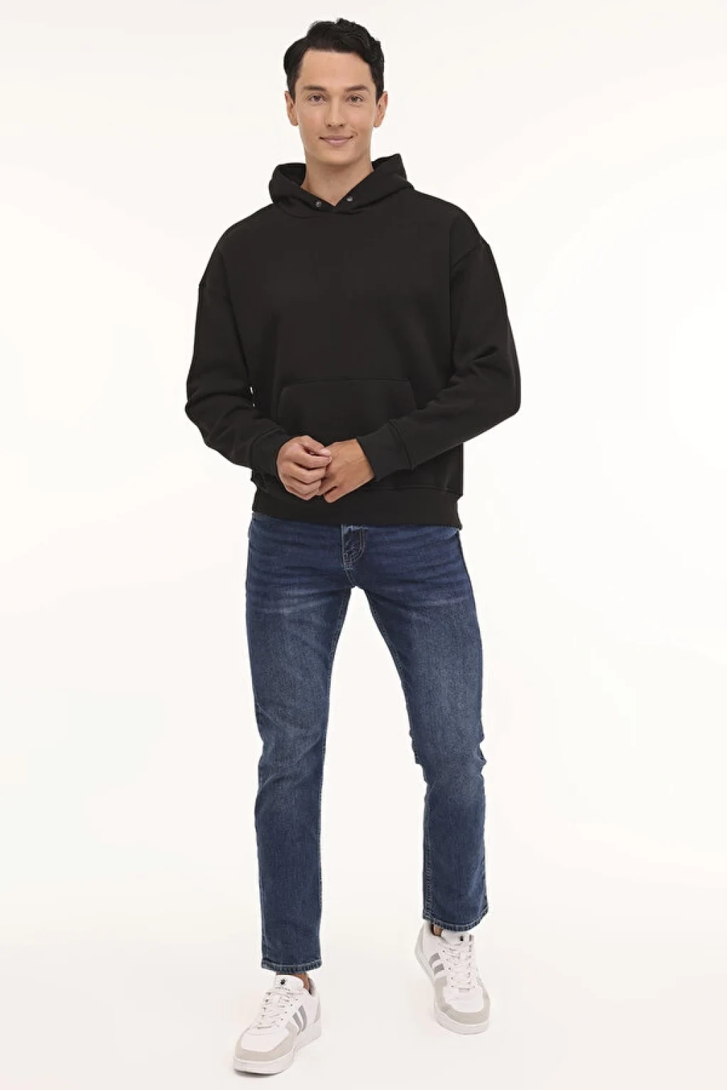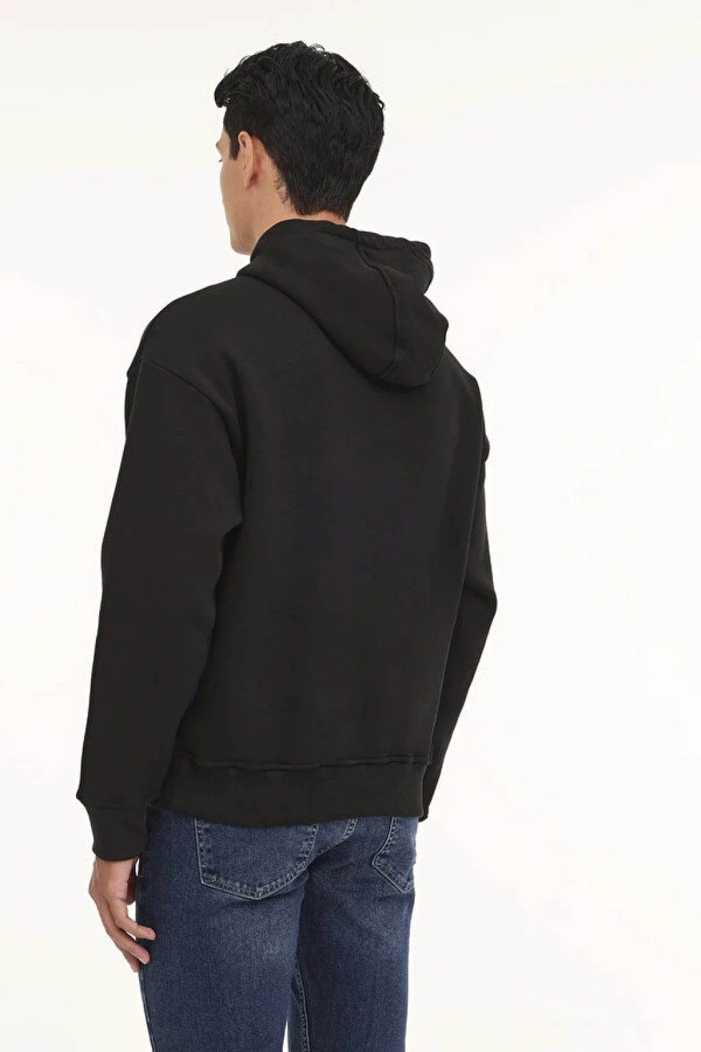 XSIDE Siyah Uzun Kollu Baskılı Erkek Hoodie