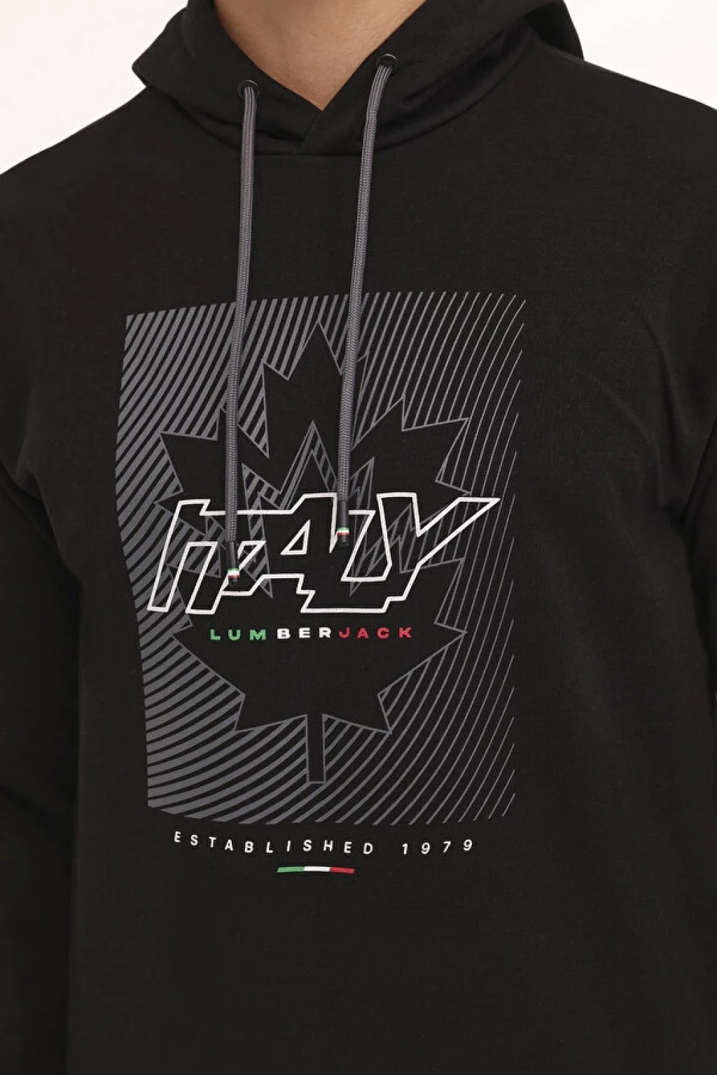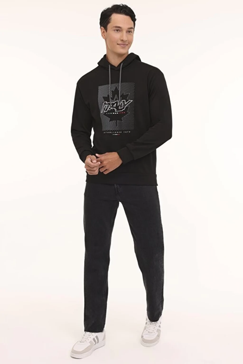 XSIDE Siyah Uzun Kollu Baskılı Erkek Hoodie