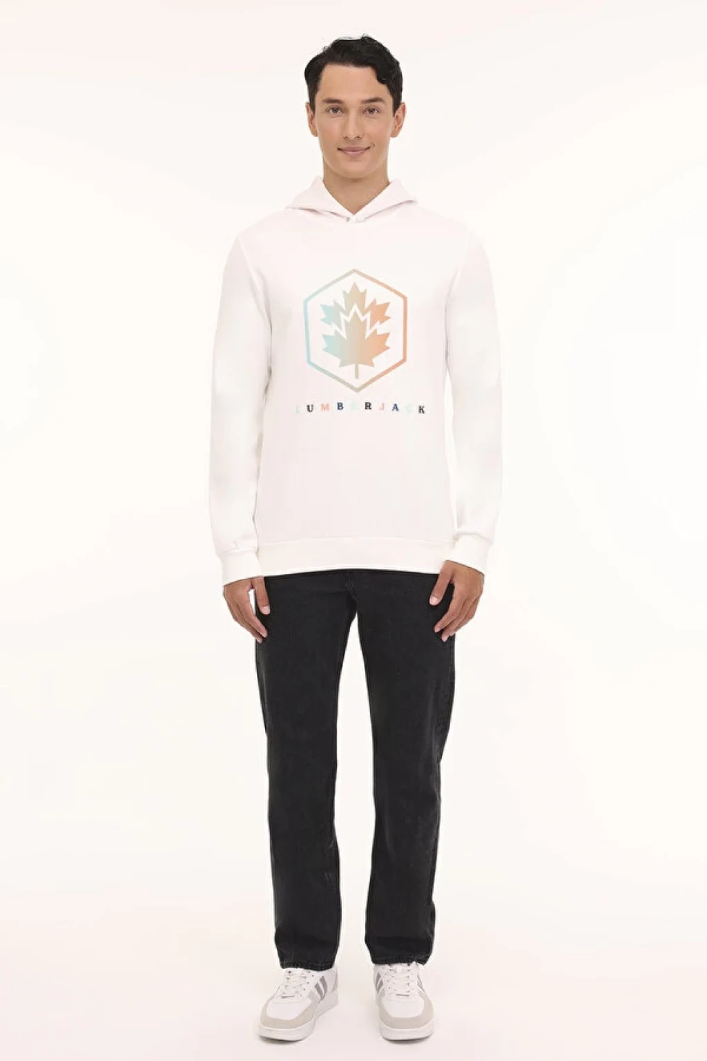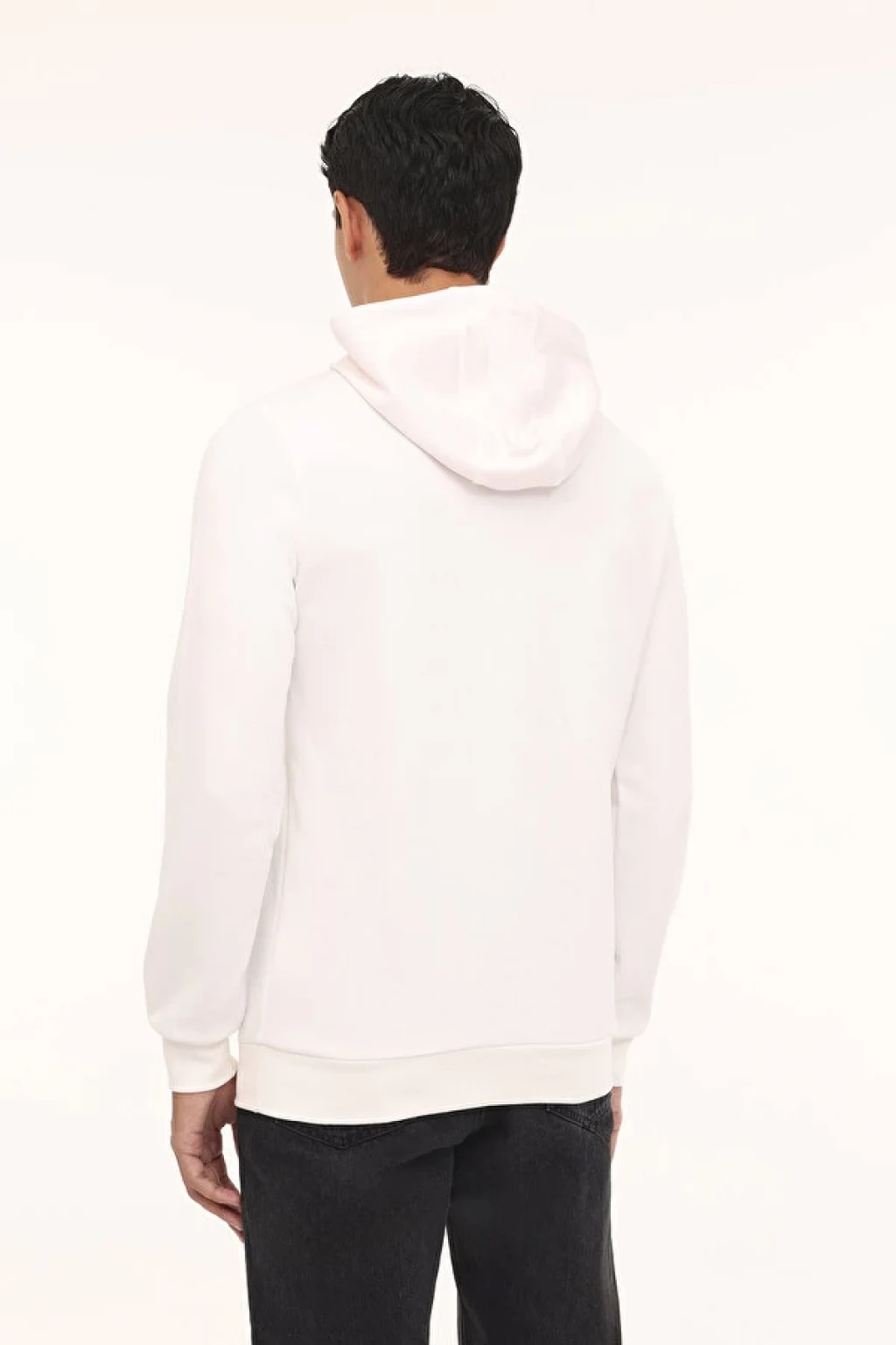 XSIDE Beyaz Uzun Kollu Baskılı Erkek Kalın Hoodie