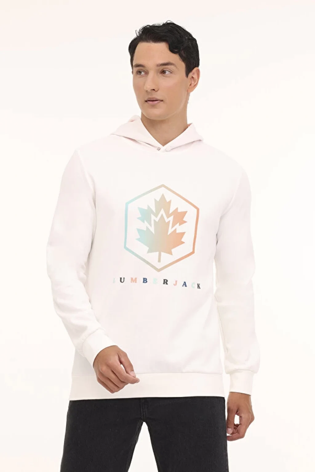 XSIDE Beyaz Uzun Kollu Baskılı Erkek Hoodie