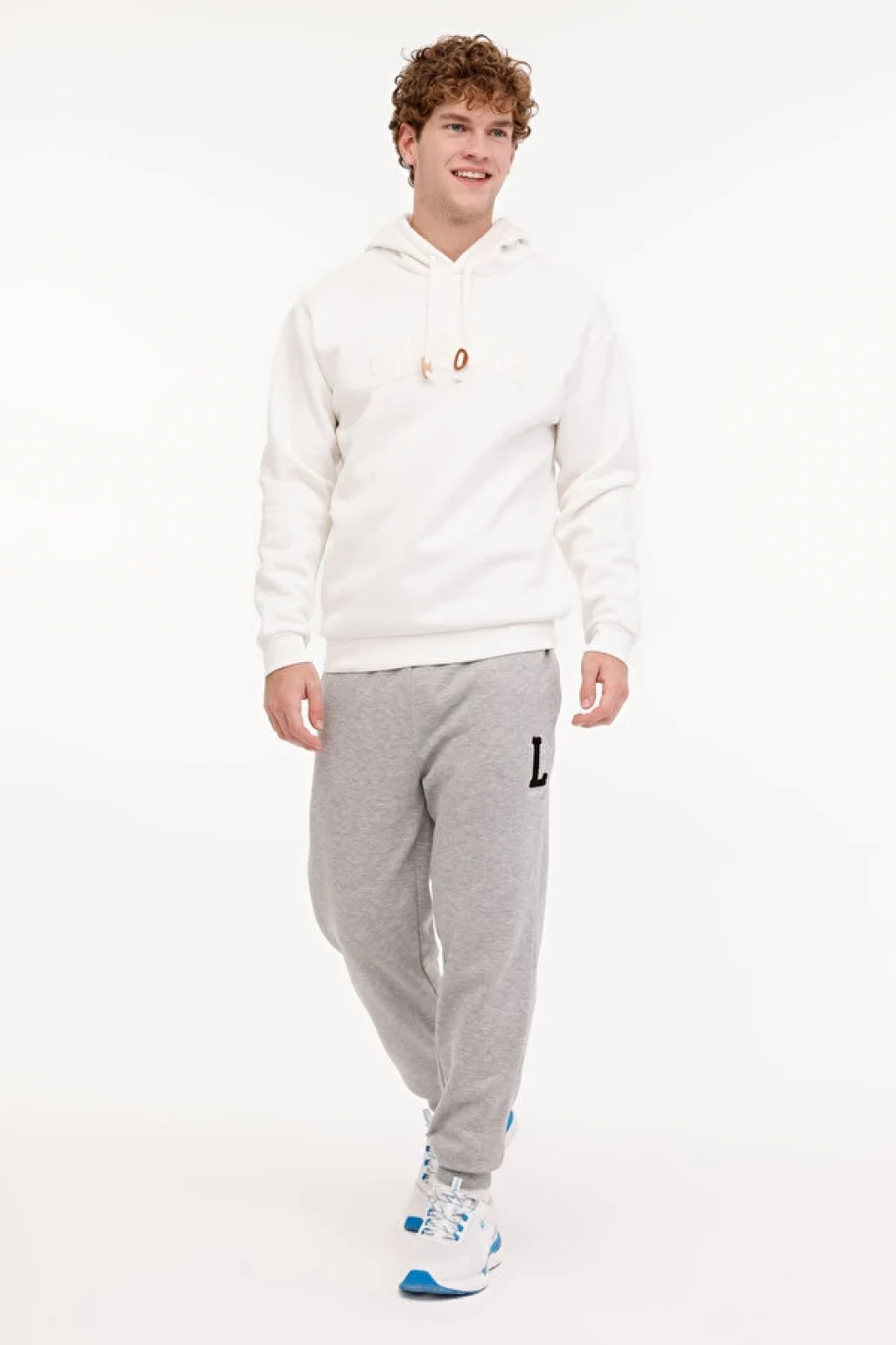 XSIDE Beyaz Uzun Kollu Baskılı Erkek Kalın Hoodie
