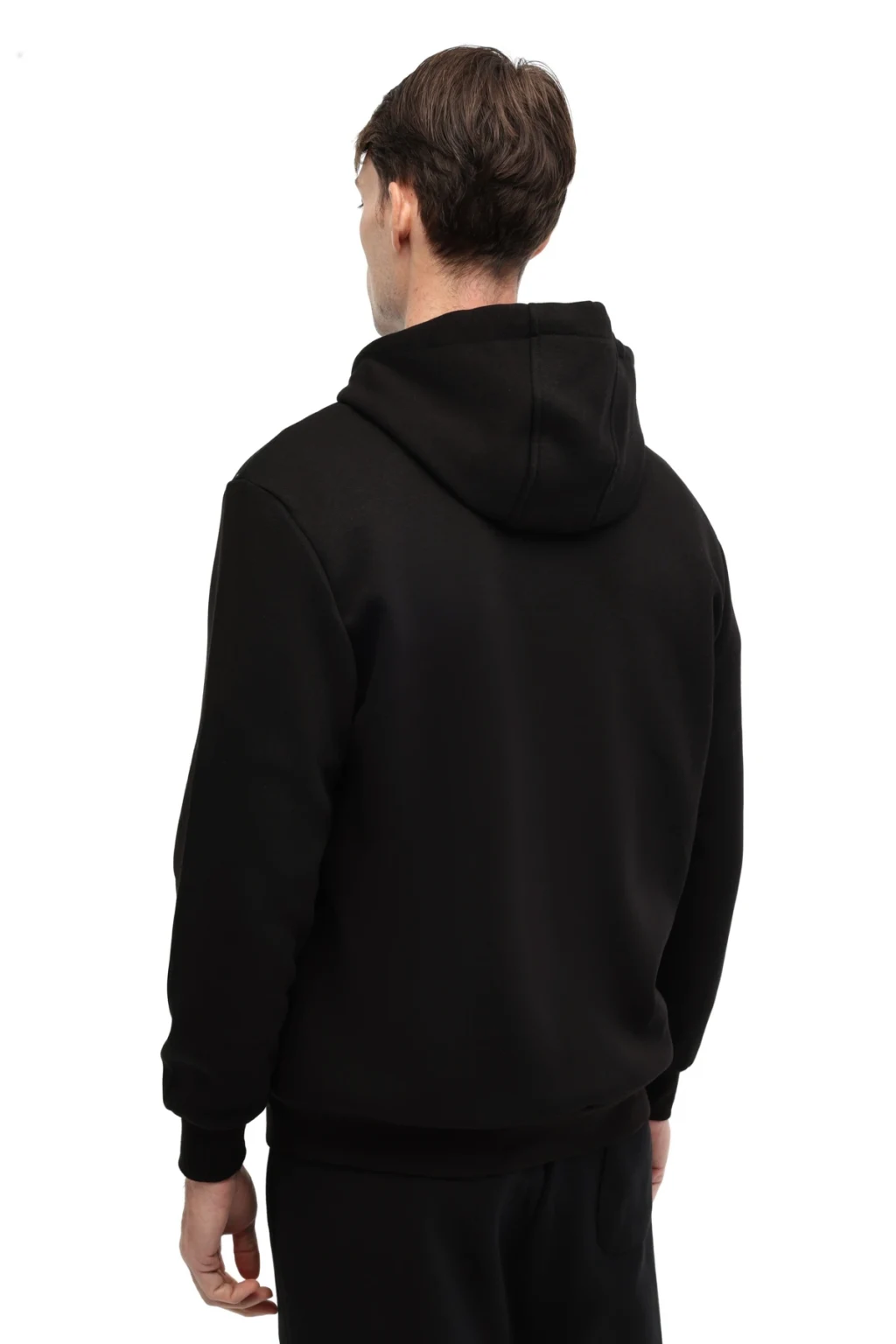 LCW Kids Siyah Kapüşonlu Nakışlı Uzun Kollu Polar Erkek Çocuk Fermuarlı Sweatshirt
