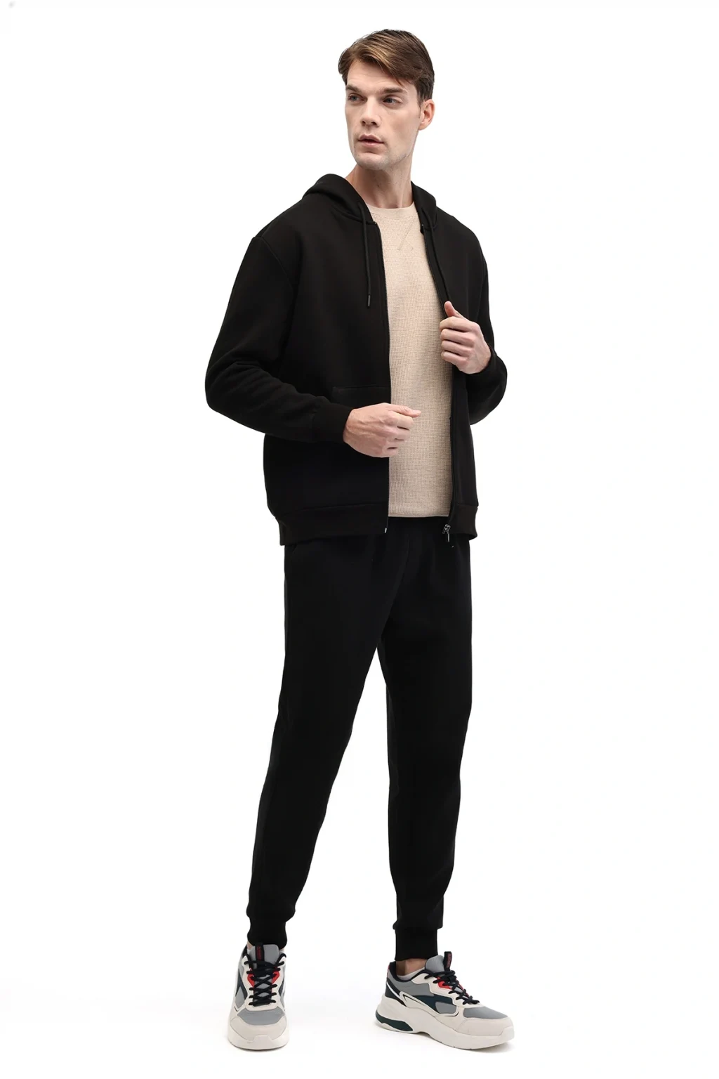 LCW Kids Siyah Kapüşonlu Erkek Çocuk Kalın Fermuarlı Sweatshirt