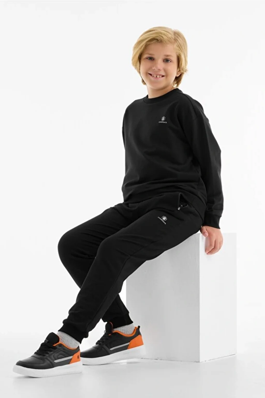 LCW Kids Siyah Beli Lastikli Nakışlı Polar Erkek Çocuk Jogger Eşofman Altı