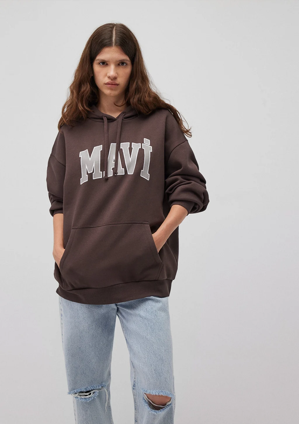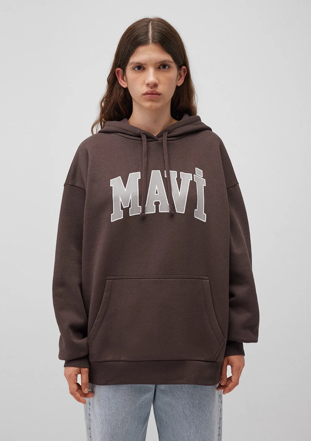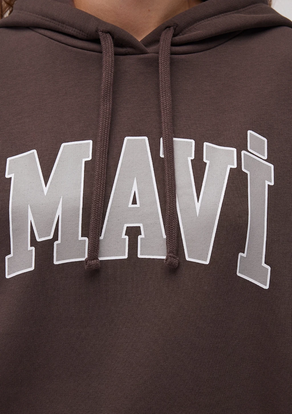 Mavi nin kadın koleksiyonundan Mavi Logo Baskılı Kapüşonlu Kahverengi Sweatshirt. Şardonlu, iple ayarlanabilir kapüşon, içi şardonlu kanguru cep.