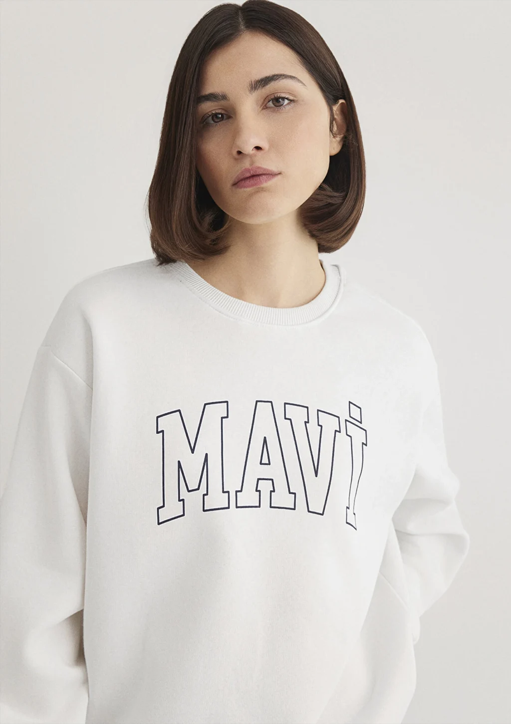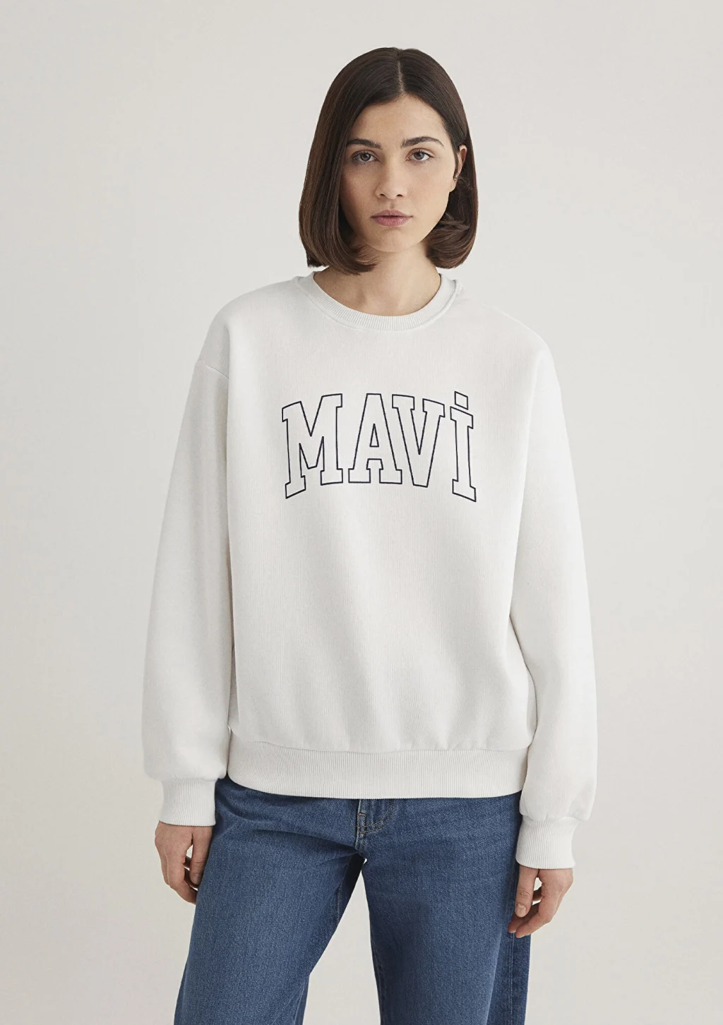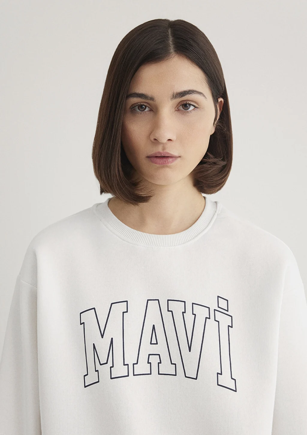 Mavi nin kadın koleksiyonundan Mavi Logo Baskılı Beyaz Sweatshirt. Şardonlu.
