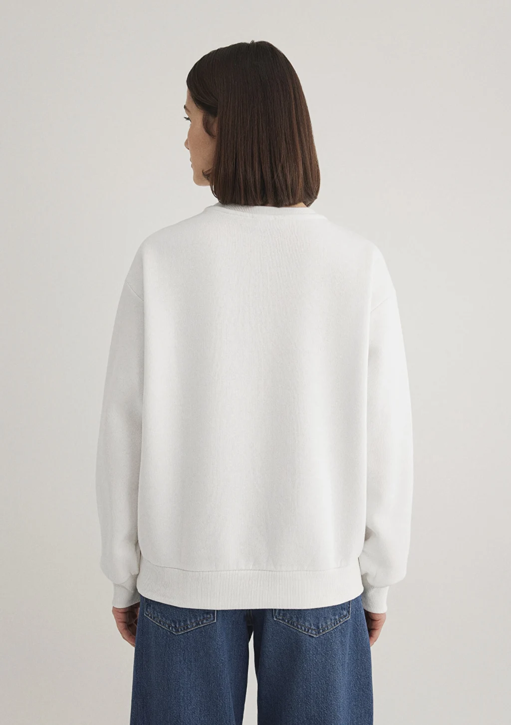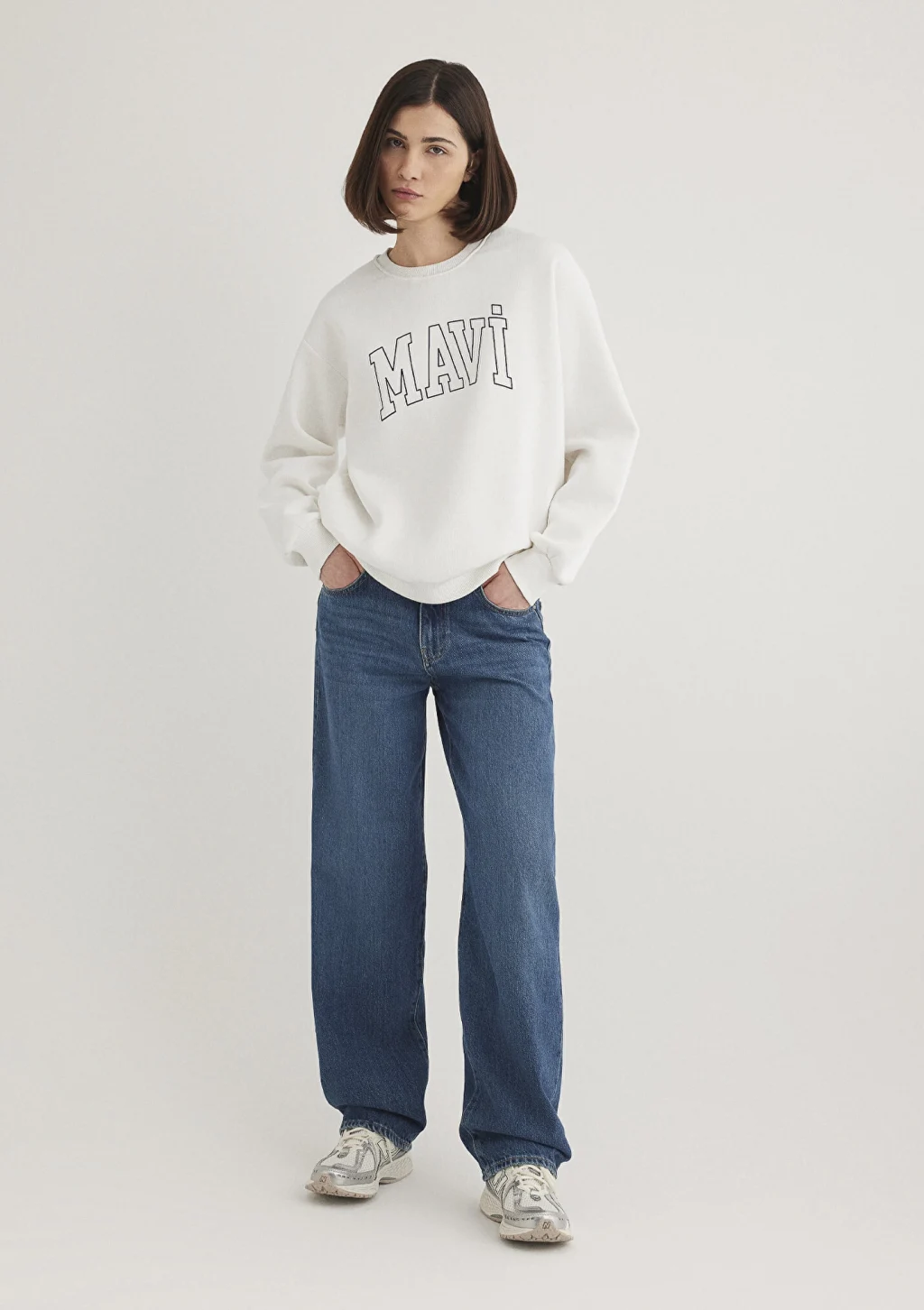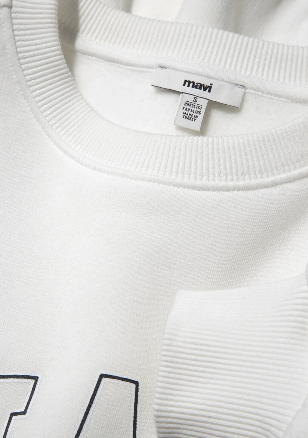 Mavi nin kadın koleksiyonundan Mavi Logo Baskılı Beyaz Sweatshirt. Şardonlu.