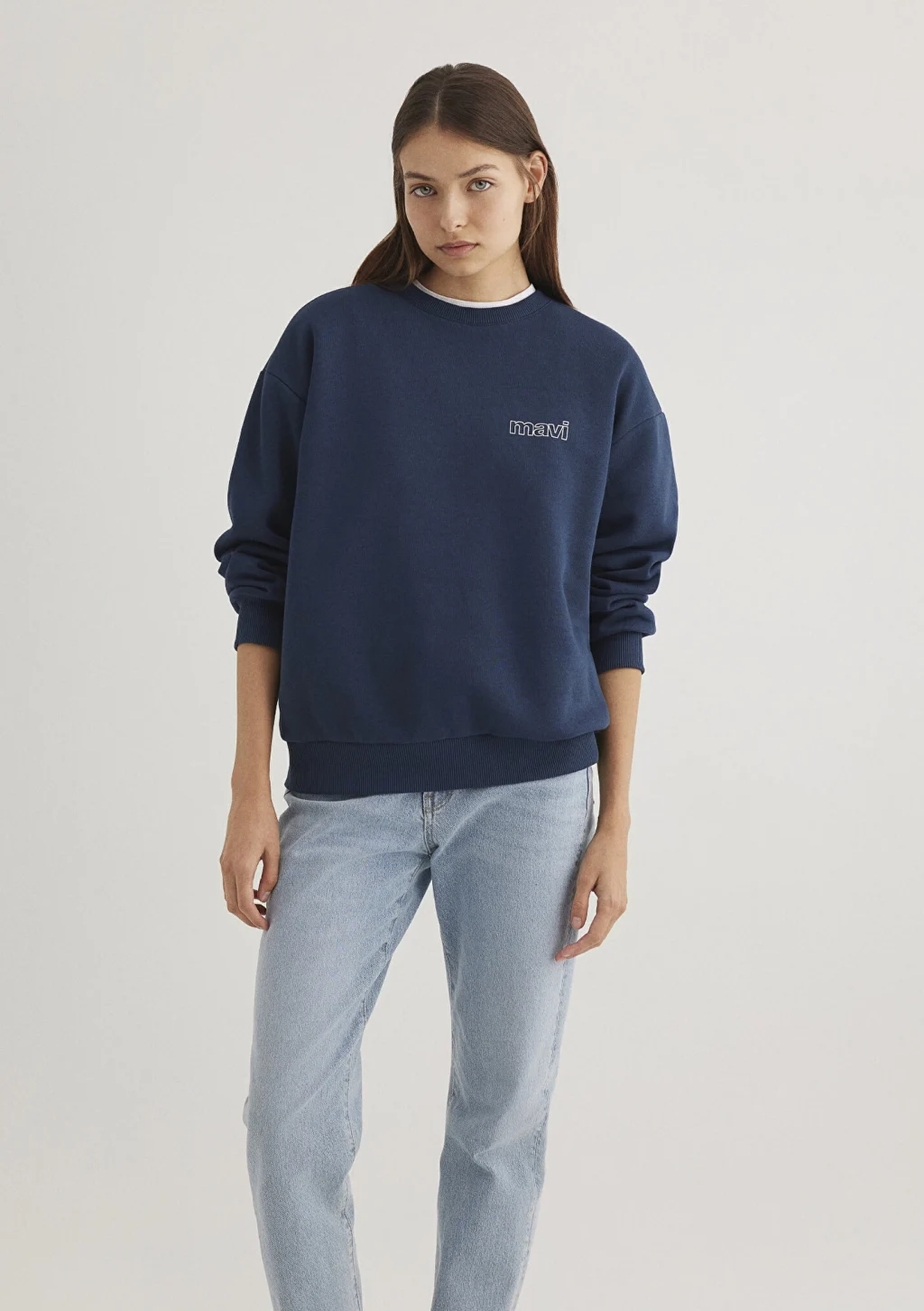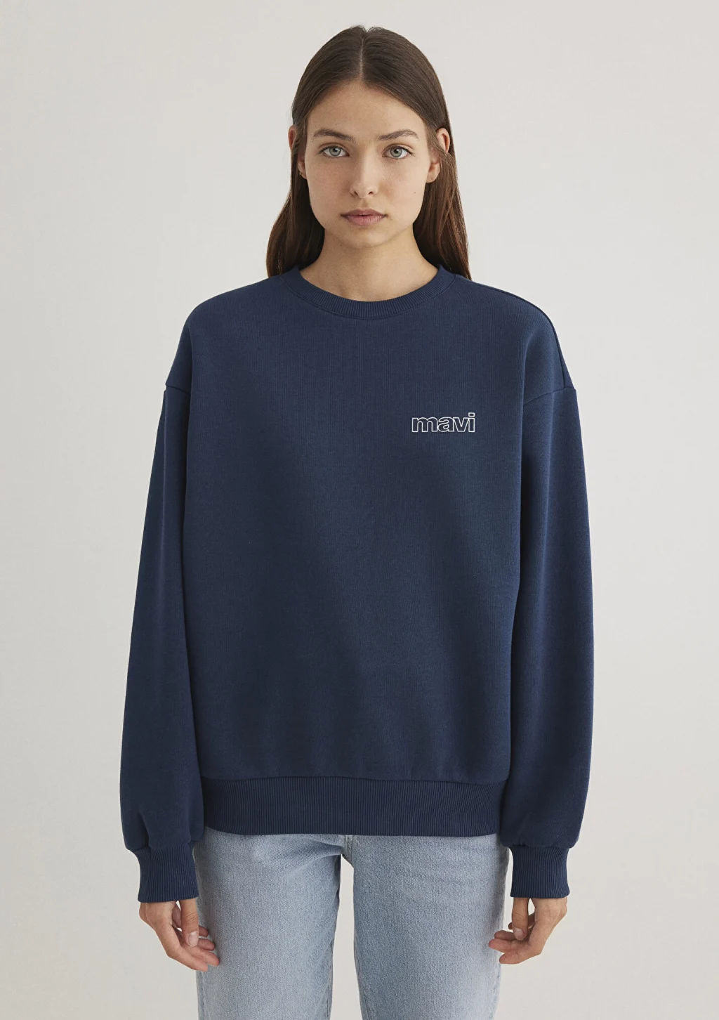 Mavi nin kadın koleksiyonundan Mavi Logo Baskılı Lacivert Sweatshirt. Şardonlu.