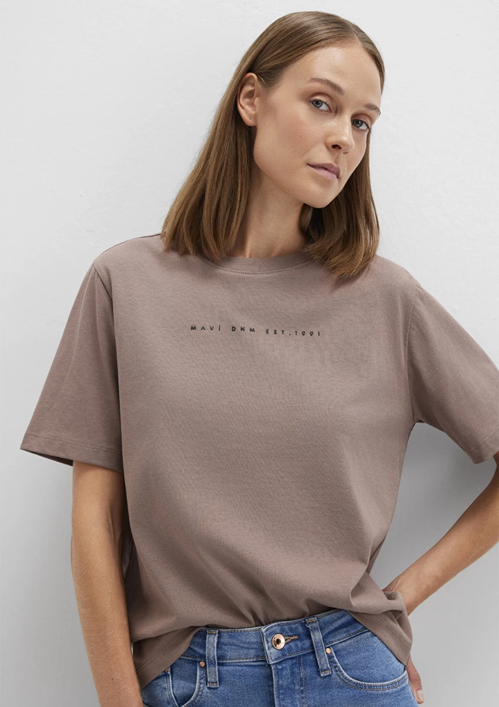 Baskılı Kahverengi Tişört, yüzde yüz pamuklu orta ağırlıkta kumaştan üretilmiştir. Bisiklet yakalı ve kısa kollu olan bu tişört, loose fit, rahat kesimi ile konforlu bir kullanım sunar. Ön kısmında siyah renkli minimal yazı baskısı bulunan bu tişört, kahverengi tonuyla şık ve sade bir görünüm sağlar.