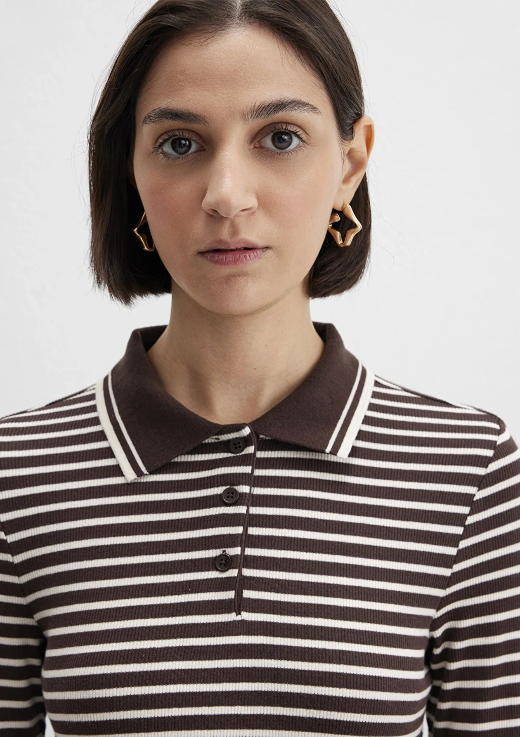 Mavi nin kadın koleksiyonundan Çizgili Kahverengi Polo Tişört.