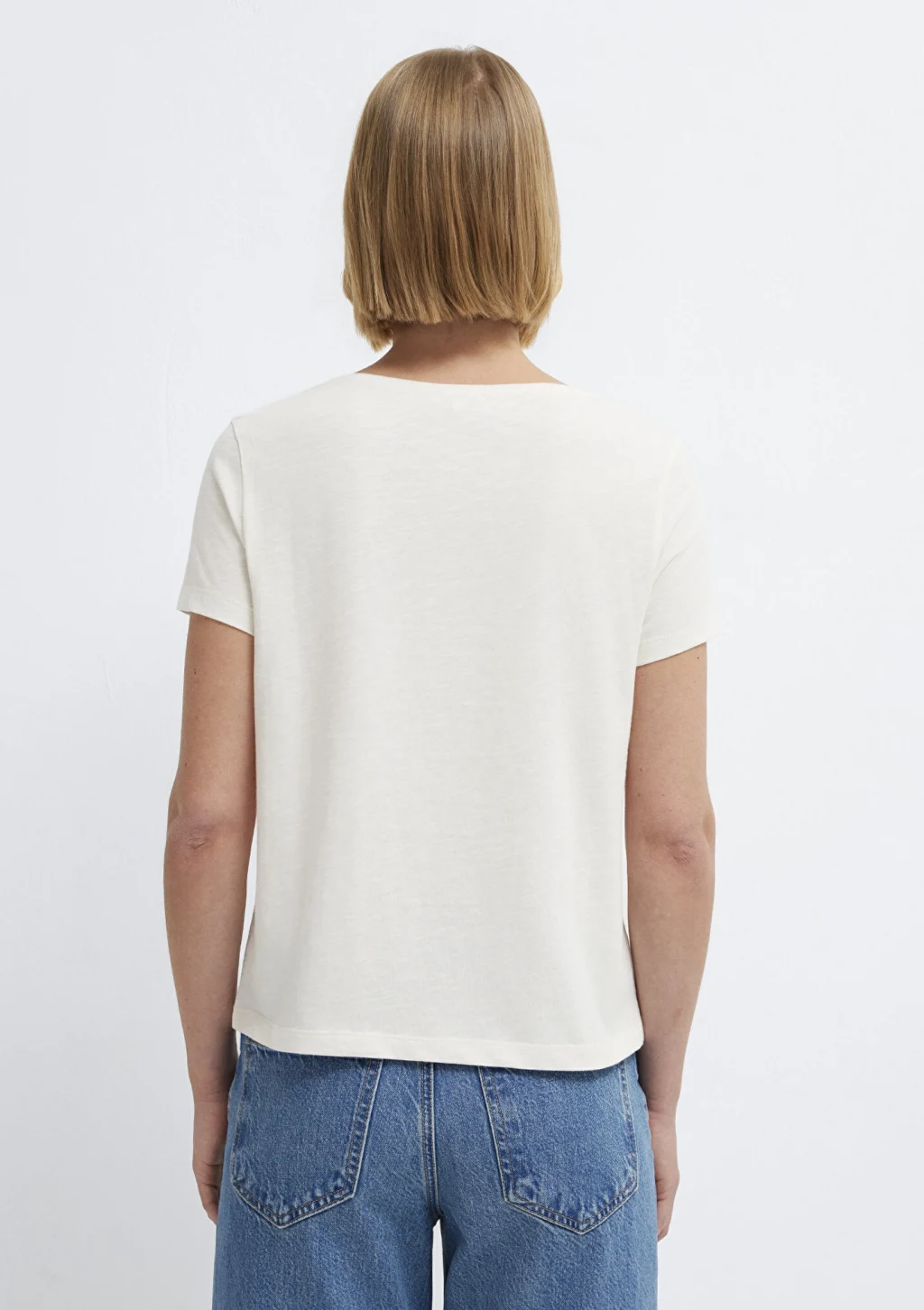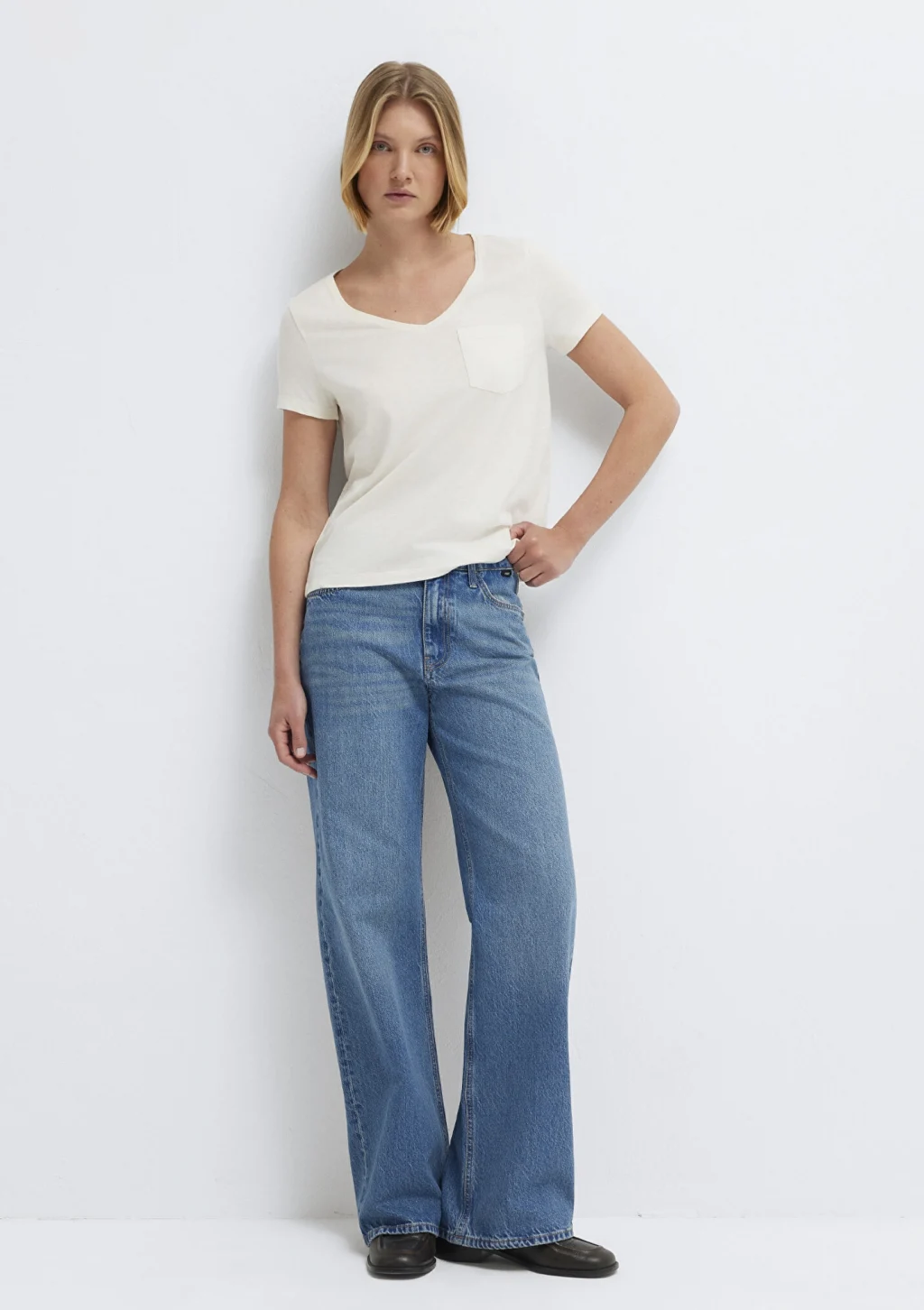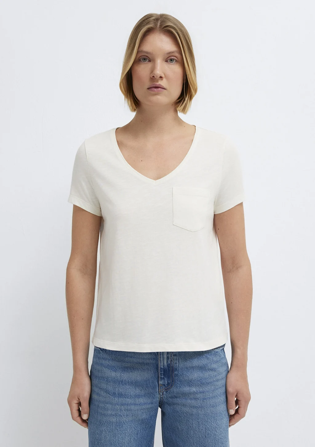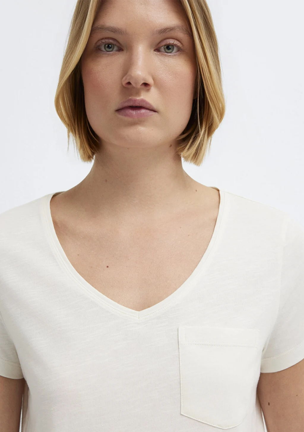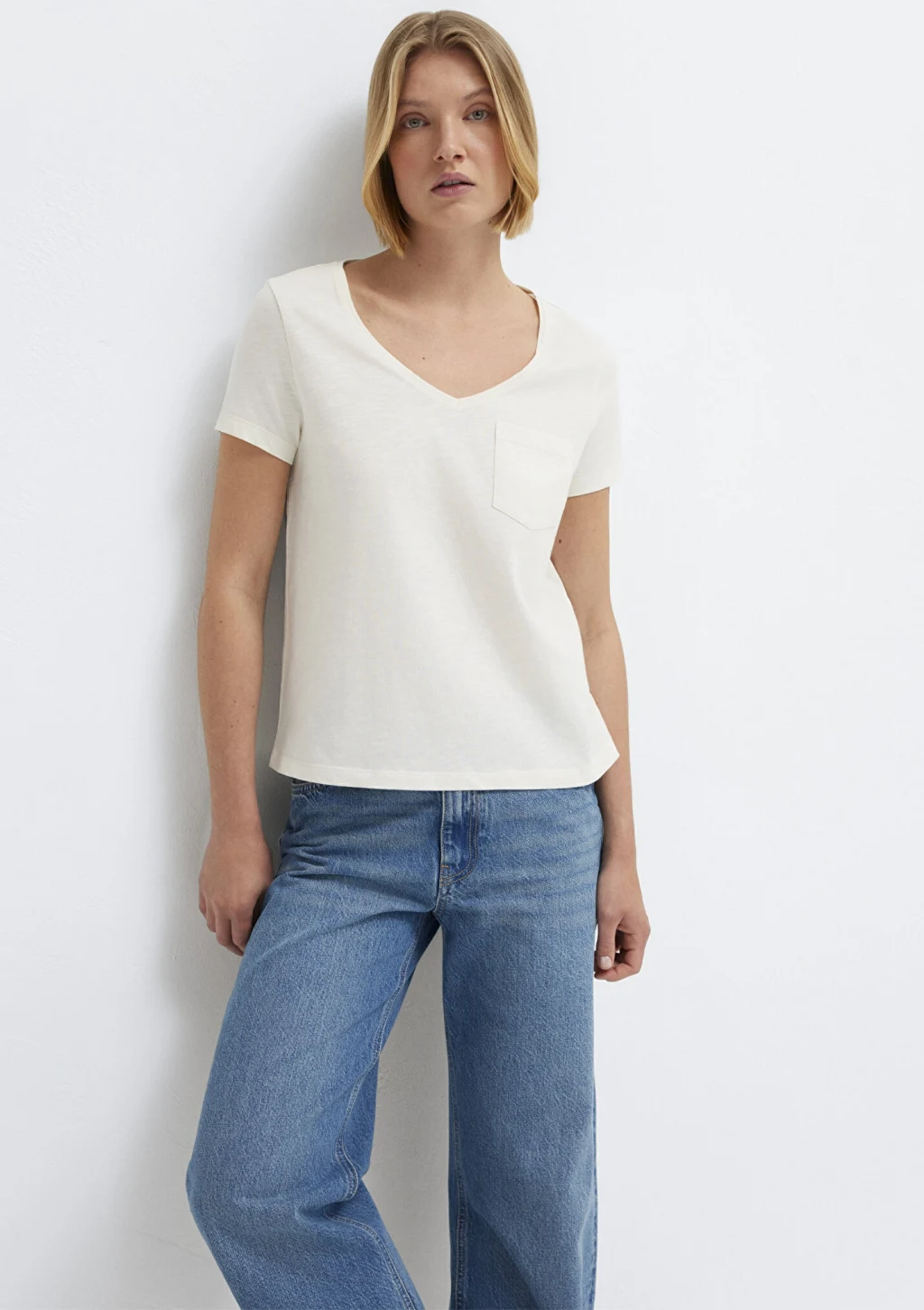 Mavi nin kadın koleksiyonundan V Yaka Ekru Basic Tişört.