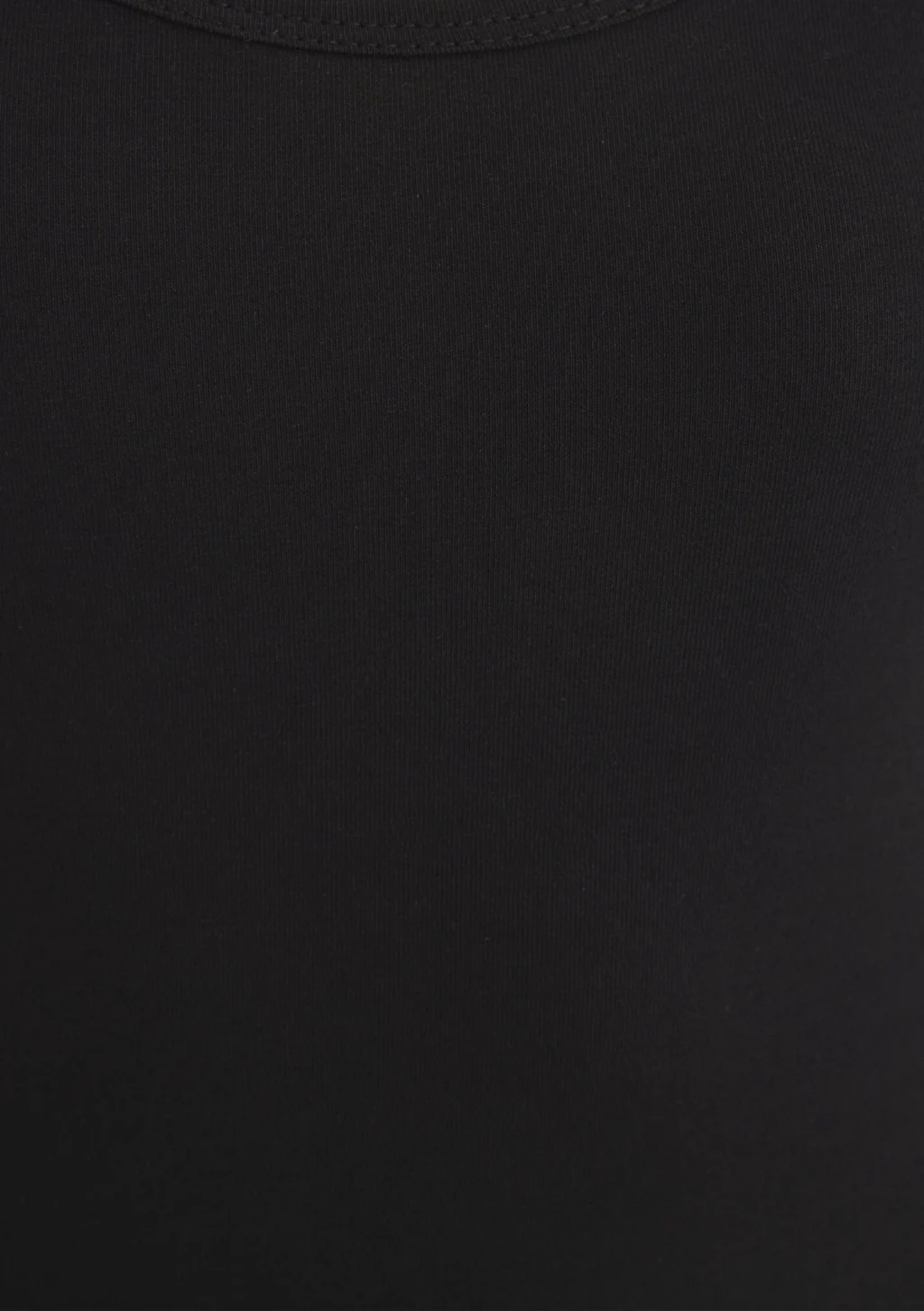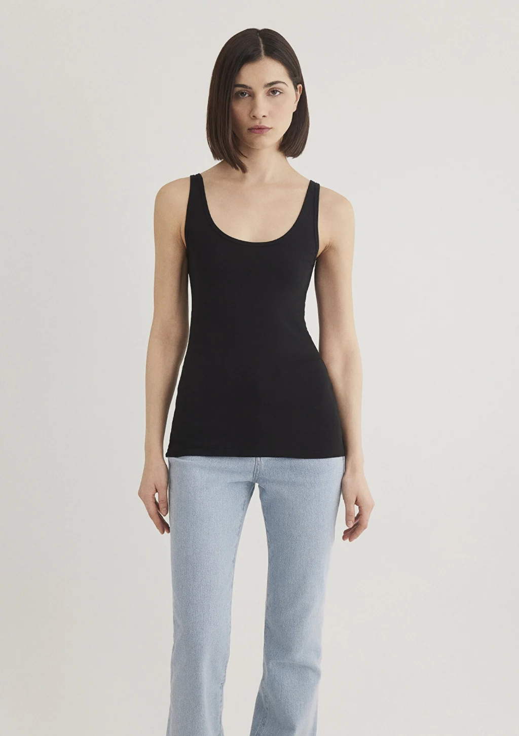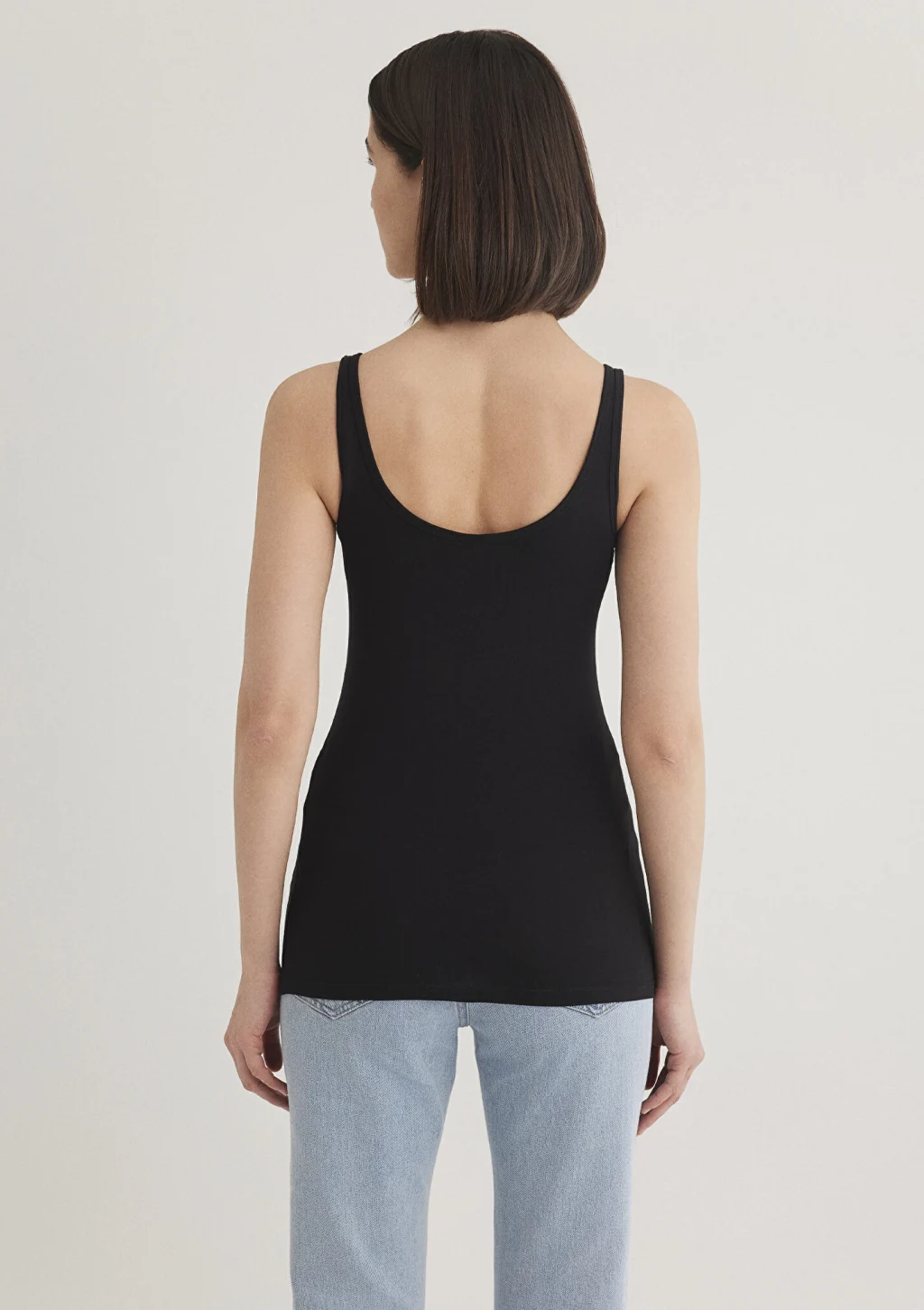 Siyah Basic Stretch Atlet, pamuk karışımlı esnek kumaştan üretilmiş orta ağırlıkta bir üründür. Fitted, vücuda oturan kesimi ve kolsuz tasarımı ile şık bir görünüm sunarken, kayık yakası ile rahat bir kullanım sağlar. Düz dokusu ve siyah rengiyle her kombine uyum sağlayan bu atlet, günlük giyim için ideal bir seçenektir.